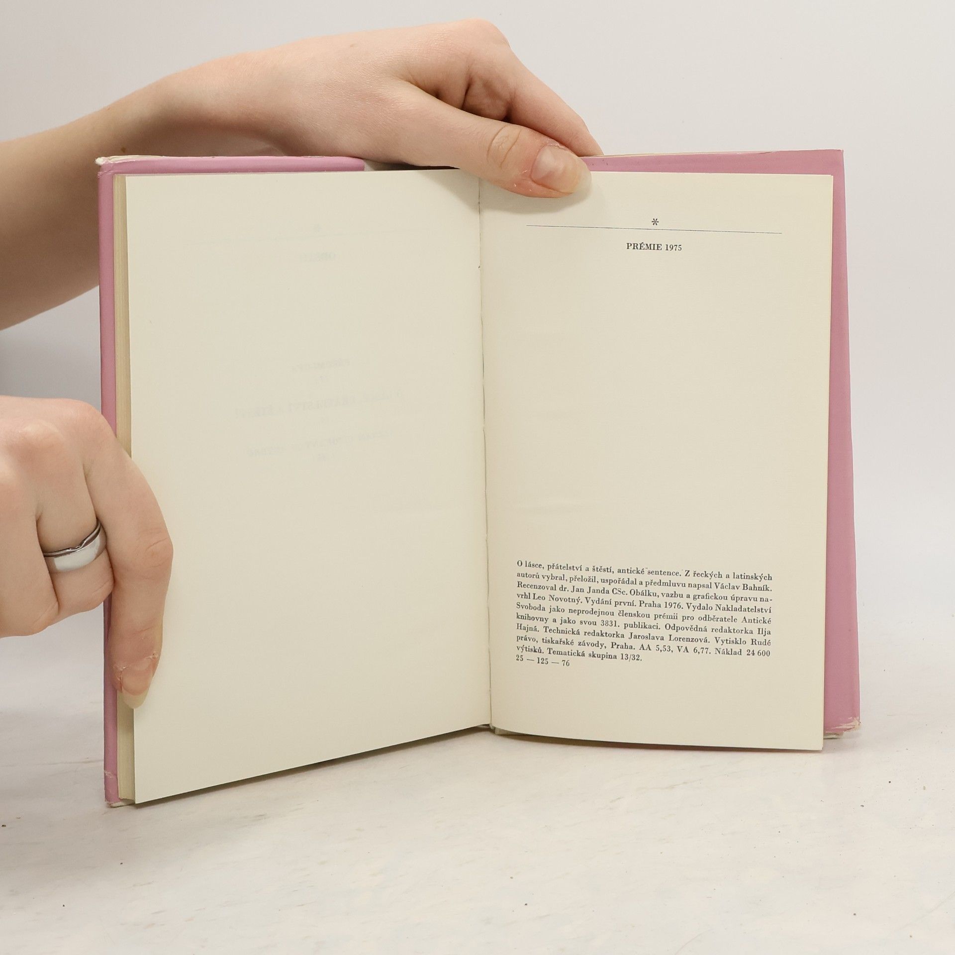 Antické sentence. Předmluva: Již staří Římané dělali to a ono - to bývalo zaklínadlo, které někdy pomáhalo omlouvat jednání, jehož správností si člověk nebyl jist, jindy varovalo před domýšlivou hrdostí na originalitu současné doby, jindy upozorňovalo na hodnoty všelidské a všečasové. Vybrali jsme pro vás z bohaté pokladnice antické literatury hrst příkladů, jak již staří Římané (a před nimi staří Řekové) dovedli vidět světlo a stín vzdělání, dobré i špatné vlastnosti člověka a různé aspekty vztahů mezi lidmi a formulovali mnohé pocity stejně jako lidé dvacátého (jednadvacátého) století. ... Přestože žijeme ve světě úplně jiném, některé myšlenky nás udivý tím, že byly formulovány tak, že mají platnost dodnes, i když se dnešní čtenář nemůže do písmene se vším ztotožnit, vše přejímat jako vidění světe. Václav Bahník Je to kniha plná citátů a přísloví.