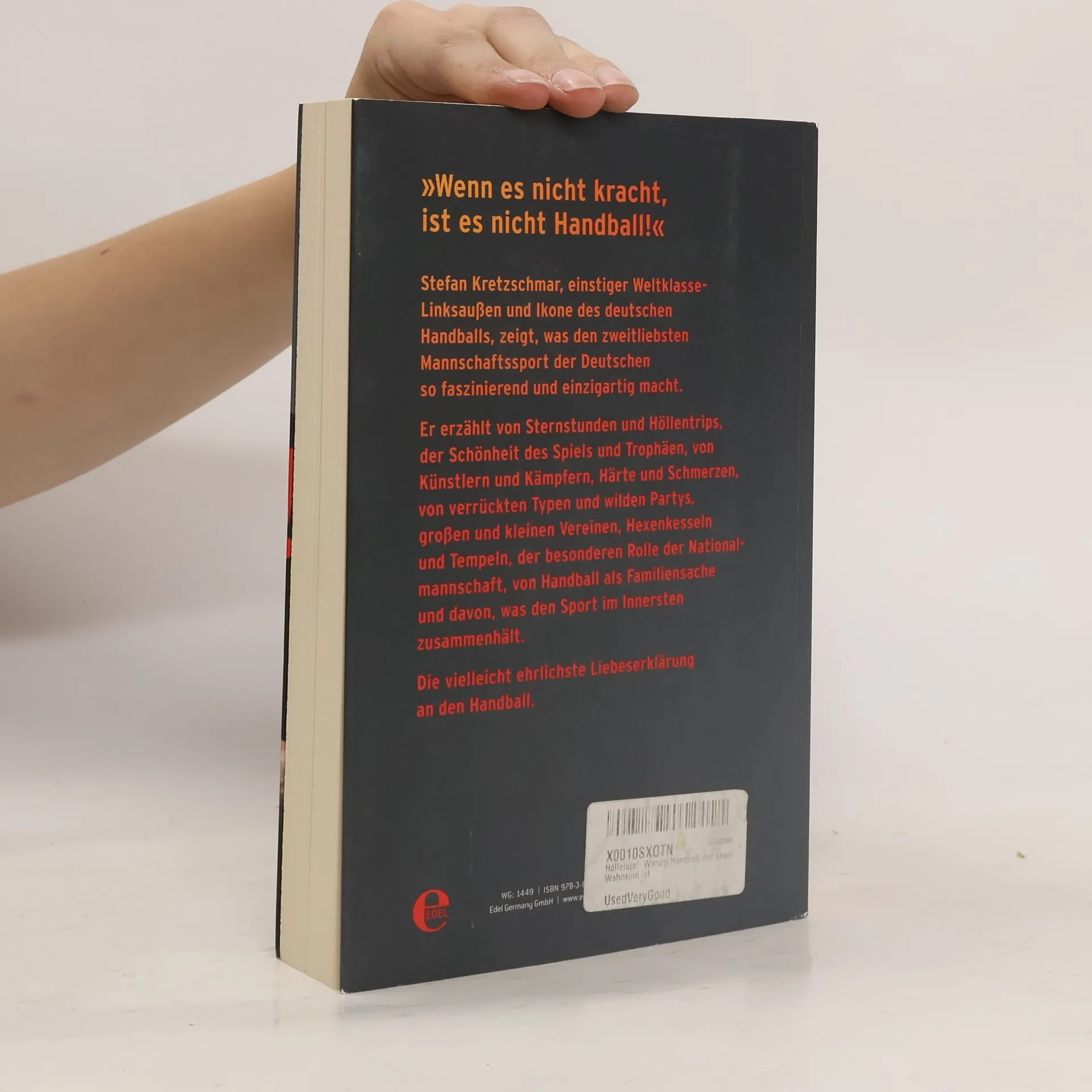 „Wenn es nicht kracht, ist es nicht Handball.“ Stefan Kretzschmar, einstiger Weltklasse-Linksaußen und Ikone des deutschen Handballs, zeigt, was den zweitliebsten Mannschaftssport der Deutschen so faszinierend und einzigartig macht. Er erzählt von Sternstunden und Höllentrips, der Schönheit des Spiels und Trophäen, von Künstlern und Kämpfern, Härte und Schmerzen, von verrückten Typen und wilden Partys, großen und kleinen Vereinen, Hexenkesseln und Tempeln, der besonderen Rolle der Nationalmannschaft, von Handball als Familiensache und davon, was den Sport im Innersten zusammenhält. Der Leser erfährt, warum die entnervten Nachbarn in der elterlichen Berliner Plattenbauwohnung Schuld am Start Stefan Kretzschmars Handballkarriere waren, wie Alfred Gislason es schaffte, ihn trotz Bandscheibenverletzung bei einem Champions-League-Spiel auflaufen zu lassen, oder warum Brustwarzendrehen das Foul für „fortgeschrittene Dreckssäcke“ ist. Die vielleicht ehrlichste Liebeserklärung an den Handball.
