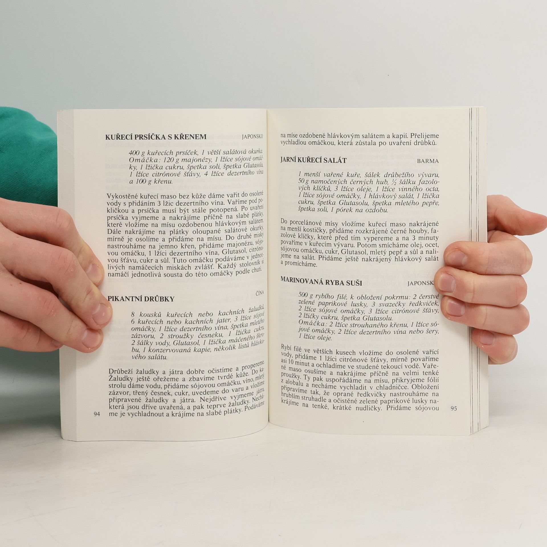 Výběr z nepřeberného množství receptů, kterými oplyvají národní kuchyně Iránu, Afghánistánu, Pákistánu, Indie, Nepálu, Srí Lanky, Barmy, Thajska, Malajsie, Vietnamu, Kambodži, Laosu, Indonésie, Filipín, Číny, Koreje a Japonska, kde přednost je dána úpravám, pro něž je možné u nás opatřit suroviny a jídlům, která jsou chuťově a vzhledem přijatelná pro Středoevropana.