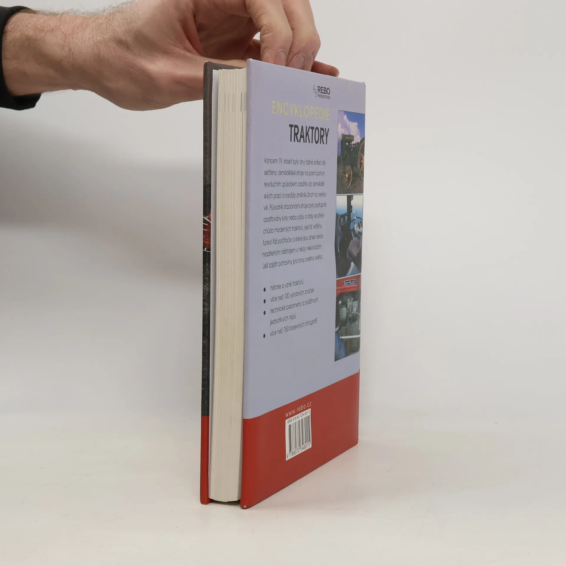 Encyklopedie popisuje historii a vznik traktorů, uvádí více než 100 výrobních značek, technické parametry a zvláštnosti jednotlivých typů a více než 750 barevných fotografií.