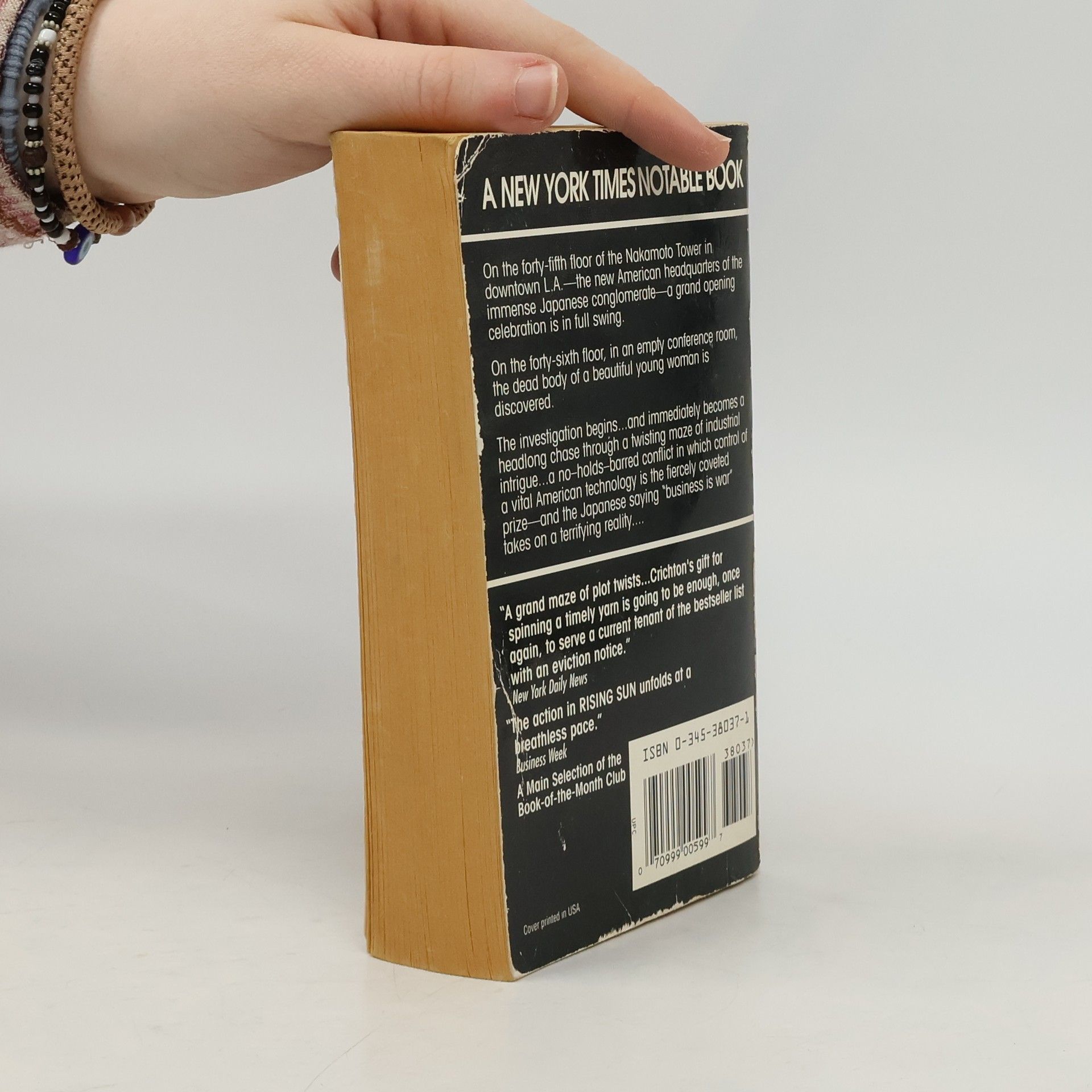 On the forty-fifth floor of the Nakamoto Tower in downtown L.A.—the new American headquarters of the immense Japanese conglomerate—a grand opening celebration is in full swing. On the forty-sixth floor, in an empty conference room, the dead body of a beautiful young woman is discovered. The investigation begins ... and immediately becomes a headlong chase through a twisting maze of industrial intrigue ... a no-holds-barred conflict in which control of a vital American technology is the fiercely coveted prize—and the Japanese saying "business is war" takes on a terrifying reality ... --back cover