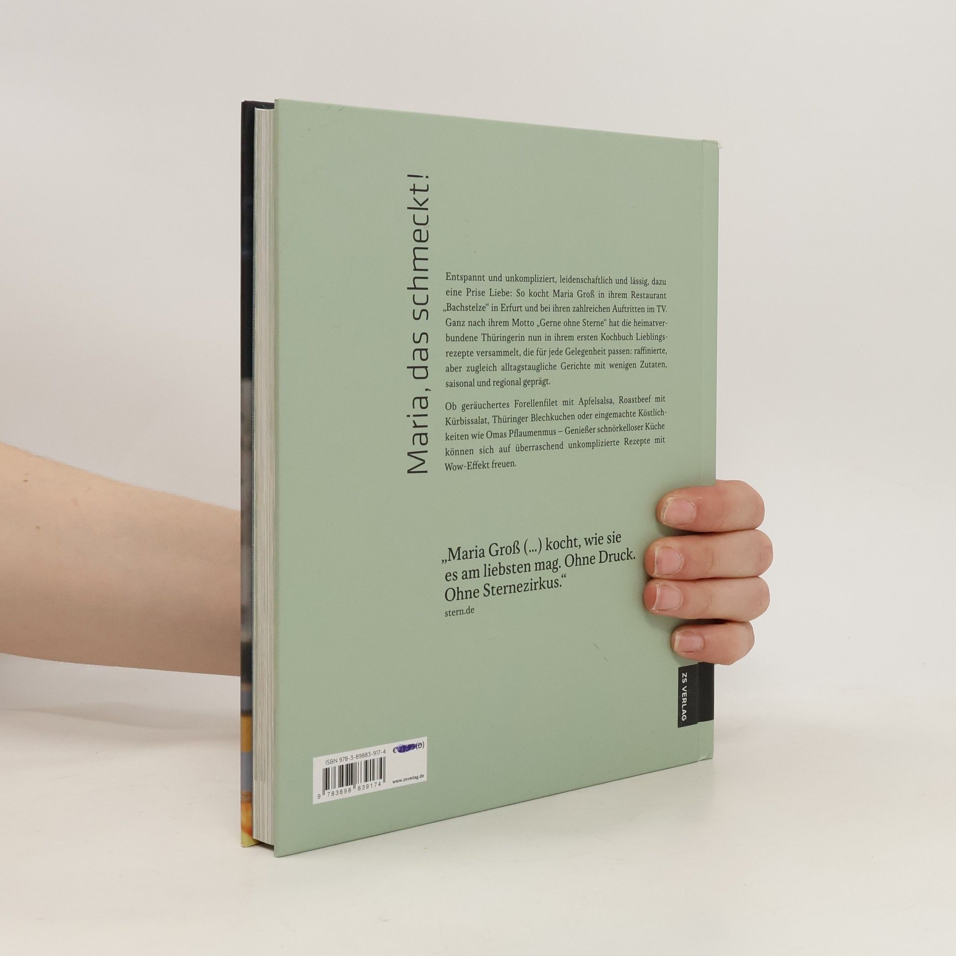 Entspannt und unkompliziert, leidenschaftlich und lässig, dazu eine Prise Liebe: So kocht Maria Groß in ihrem Restaurant „Bachstelze“ in Erfurt und bei ihren zahlreichen Auftritten im TV. Ganz nach ihrem Motto „Gerne ohne Sterne“ hat die heimatverbundene Thüringerin nun in ihrem ersten Kochbuch rund 60 Lieblingsrezepte versammelt, die für jede Gelegenheit passen: raffinierte, aber zugleich alltagstaugliche Gerichte mit wenigen Zutaten, saisonal und regional geprägt. Ob geräuchertes Forellenfilet mit Apfelsalsa, Roastbeef mit Kürbissalat, Thüringer Blechkuchen oder eingemachte Köstlichkeiten wie Omas Pflaumenmus – Genießer schnörkelloser Küche können sich auf überraschend unkomplizierte Rezepte mit Wow-Effekt freuen. Da kann man nur sagen: Maria, das schmeckt uns!