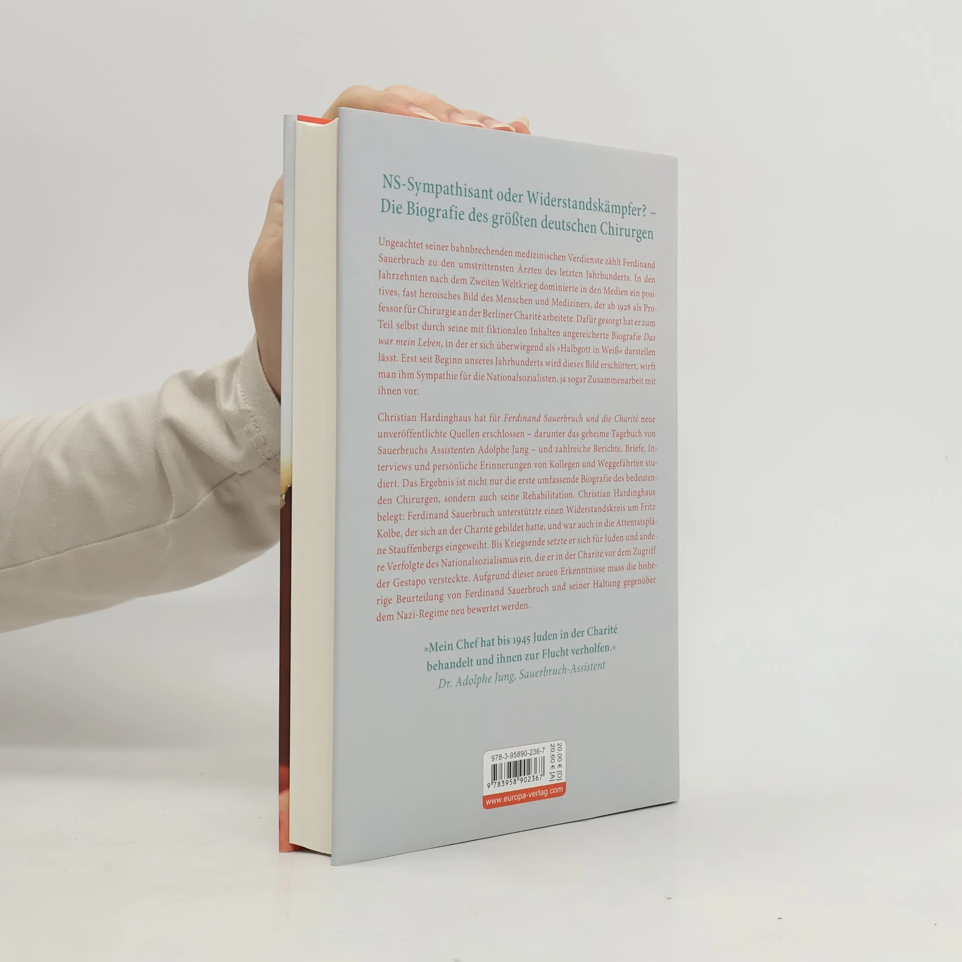 Ungeachtet seiner medizinischen Verdienste zählt Ferdinand Sauerbruch zu den umstrittensten Ärzten der Zeitgeschichte. In den Jahrzehnten nach dem Krieg dominierte ein positives Bild des Mediziners, der ab 1928 als Professor für Chirurgie an der Berliner Charité arbeitete. Dies förderte er selbst durch seine Biografie „Das war mein Leben“, in der er sich als »Halbgott in Weiß« inszenierte. Erst seit Beginn dieses Jahrhunderts wird dieses Bild erschüttert, da ihm Sympathie und sogar Zusammenarbeit mit den Nationalsozialisten vorgeworfen wird. Christian Hardinghaus hat für „Ferdinand Sauerbruch und die Charité“ neue, unveröffentlichte Quellen erschlossen, darunter das geheime Tagebuch von Sauerbruchs Assistenten Adolphe Jung, sowie zahlreiche Berichte, Briefe und persönliche Erinnerungen. Das Ergebnis ist die erste umfassende Biografie des Chirurgen und seine Rehabilitation: Sauerbruch unterstützte eine Widerstandsgruppe um den Spion Fritz Kolbe, die sich an der Charité gebildet hatte, und war in die Attentatspläne Stauffenbergs eingeweiht. Bis Kriegsende behandelte er nicht nur »verbotenerweise« Juden, sondern versteckte sie und andere Verfolgte des Naziregimes in der Charité vor der Gestapo. Diese neuen Erkenntnisse erfordern eine Neubewertung von Sauerbruchs Haltung gegenüber dem NS-Regime.