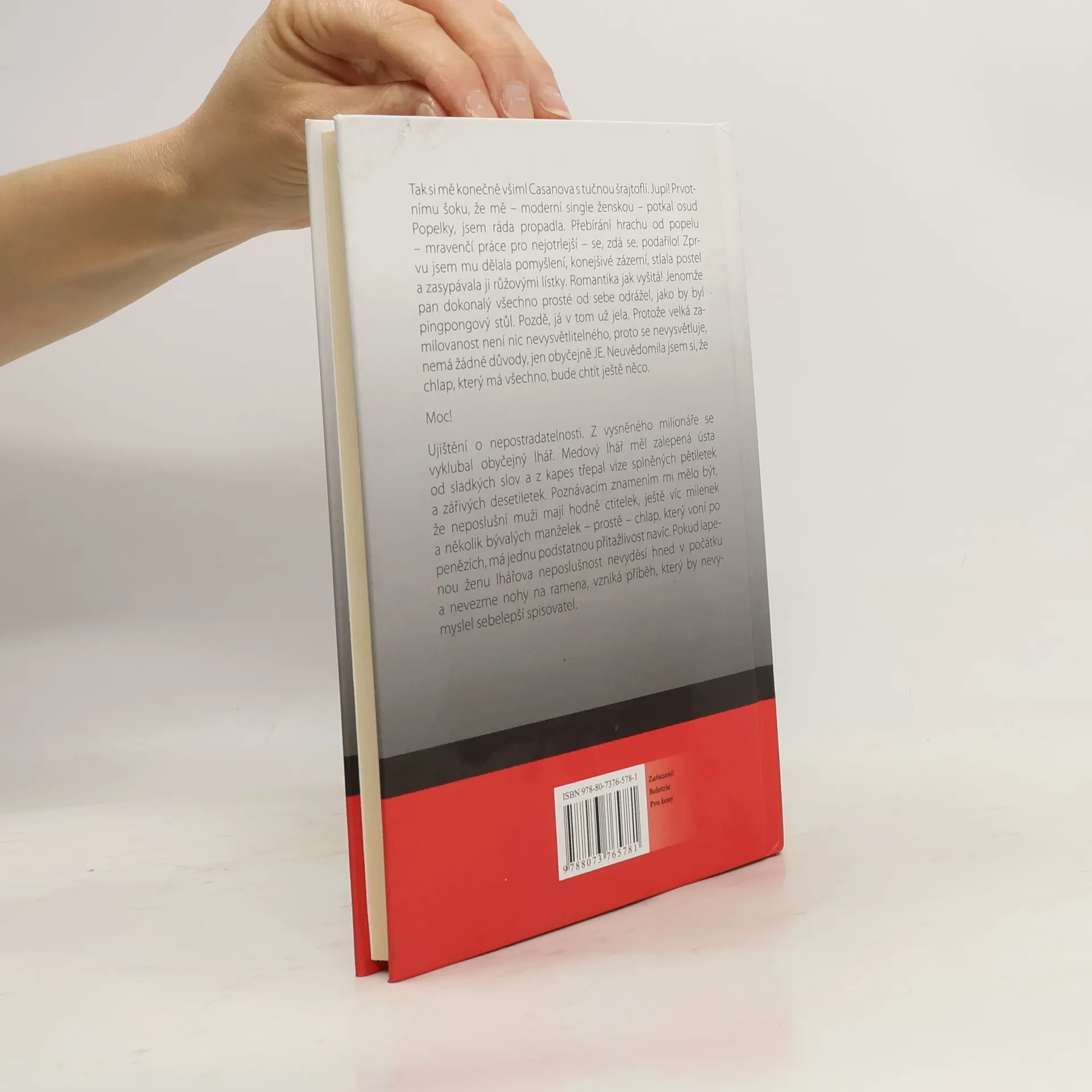 Tak si mě konečně všiml Casanova s tučnou šrajtoflí. Jupí! Prvotnímu šoku, že mě - moderní single ženskou, potkal osud Popelky, jsem ráda propadla. Přebírání hrachu od popelu – mravenčí práce pro nejotrlejší – se, zdá se, podařila! Zprvu jsem mu dělala pomyšlení, konejšivé zázemí, stlala postele a zasypávala ji růžovými lístky. Romantika jak vyšitá! Jenomže pan dokonalý všechno prosté od sebe odrážel, jako by byl pingpongový stůl. Pozdě, já v tom už jela, protože velká zamilovanost není nic nevysvětlitelného, proto se nevysvětluje, nemá žádné důvody, jen obyčejně je. Neuvědomila jsem si, že chlap, který má všechno, bude chtít ještě něco. Moc. Ujištění o nepostradatelnosti. Z vysněného milionáře se vyklubal obyčejný lhář prolhaný. Medový lhář měl zalepená ústa od sladkých slov a z kapes třepal vize splněných pětiletek a zářivých desetiletek. Poznávací znamením mi mělo být, že neposlušní muži mají hodně ctitelek, ještě víc milenek a několik bývalých manželek – prostě - chlap, který voní po penězích, má jednu podstatnou přitažlivost navíc. Pokud lapenou ženu lhářova neposlušnost nevyděsí hned v počátku a nevezme nohy na ramena, vzniká příběh, který by nevymyslel sebelepší spisovatel.