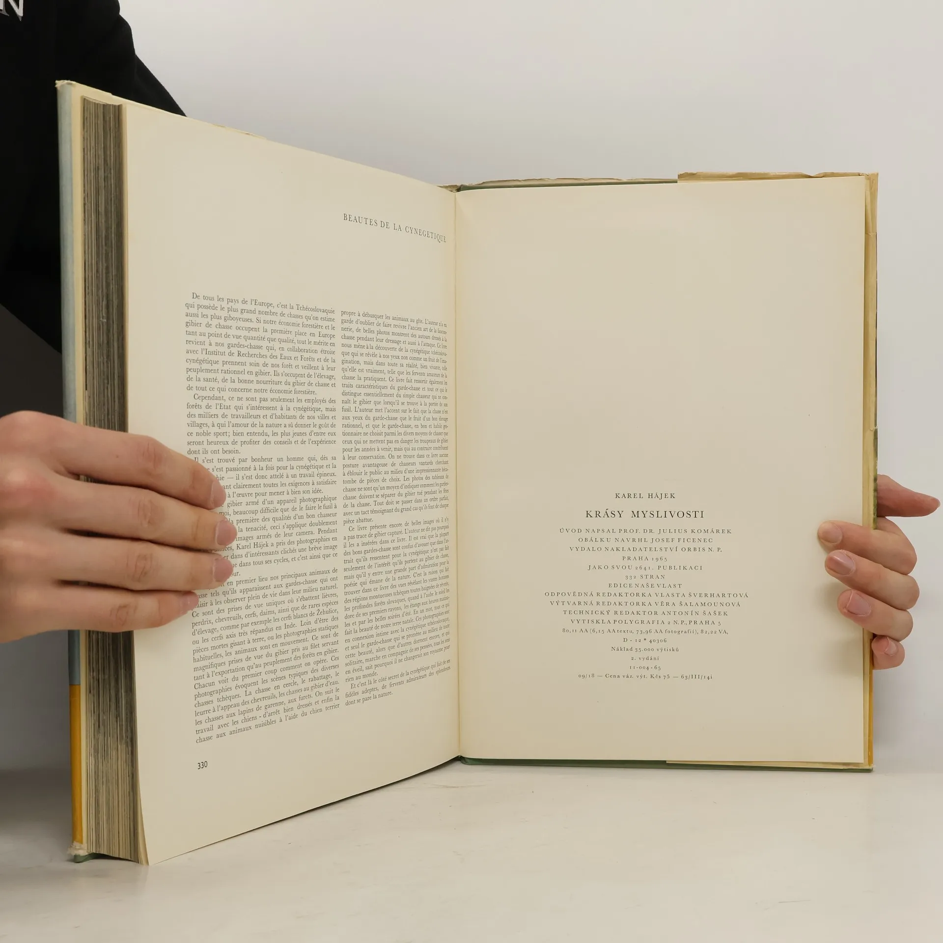 Svého druhu ojedinělá kniha známého fotoreportéra v téměř 450 černobílých i barevných snímcích zachycuje naši nejvýznamnější lovnou zvěř v jejím nejvlastnějším prostředí a projevech života, rozmanité způsoby jejího lovu, práci myslivce i jeho nejlepšího pomocníka, psa. Ve zvláštní stati autor informuje, jak získal některé snímky, z nichž nejeden je jedinečný. V příloze jsou uvedeny předpisy, jak upravovat zvěřinu.