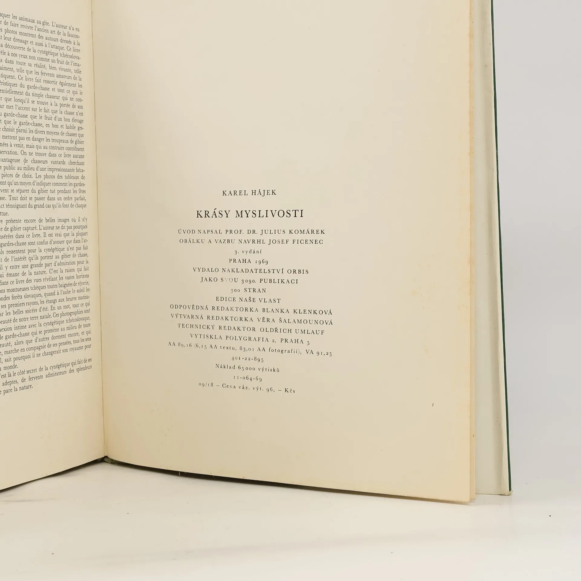 Kniha obsahuje soubor fotografií, podávajících stručný obraz československé myslivosti ve všech jejich obdobích. Snímky zachycují naše hlavní lovná zvířata (zajíce, koroptve, srnce, jeleny, vzácné oborní druhy) živá v přirozeném prostředí, jakož i různé druhy lovu, jež se uplatňujív naší myslivosti (čekaná, polní nebo lesní ploužení, česká leč, naháňky, střílení, norování, fretkování atd.). Doprovodný text podává některá vysvětlení a poučení, vztahující se k mysliveckému hospodaření.