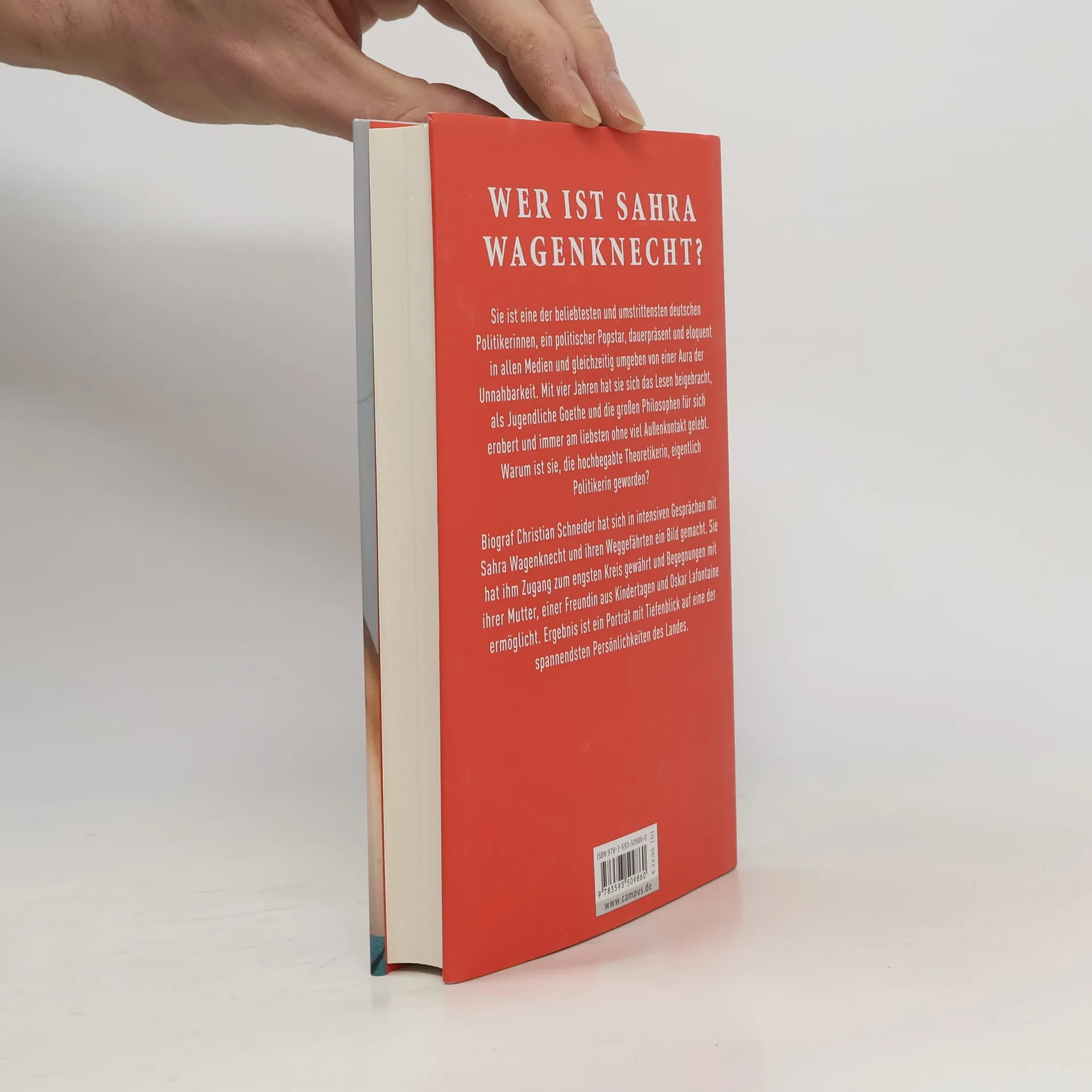 Nahaufnahme Sahra Wer ist Sahra Wagenknecht? Eine der beliebtesten und umstrittensten deutschen Politikerinnen, ein politischer Popstar, dauerpräsent in den Medien, eloquent in Talkshows und dennoch umgeben von einer Aura der Unnahbarkeit. Doch warum ist eine hochbegabte Theoretikerin und promovierte Volkswirtin, die sich selbst das Lesen beigebracht und Goethe und die klassischen Philosophen für sich erobert hat, eigentlich Politikerin geworden? Biograf Christian Schneider hat sich in intensiven Gesprächen mit ihr und ihren Weggefährten ein Bild gemacht. Sie hat ihm Zugang zum engsten Kreis gewährt und Gespräche mit ihrer Mutter, einer Freundin aus Kindertagen und Oskar Lafontaine ermöglicht. - Ein vielschichtiger Blick auf eine der spannendsten Persönlichkeiten des Landes. - Näher werden Sie Sahra Wagenknecht nicht kommen!