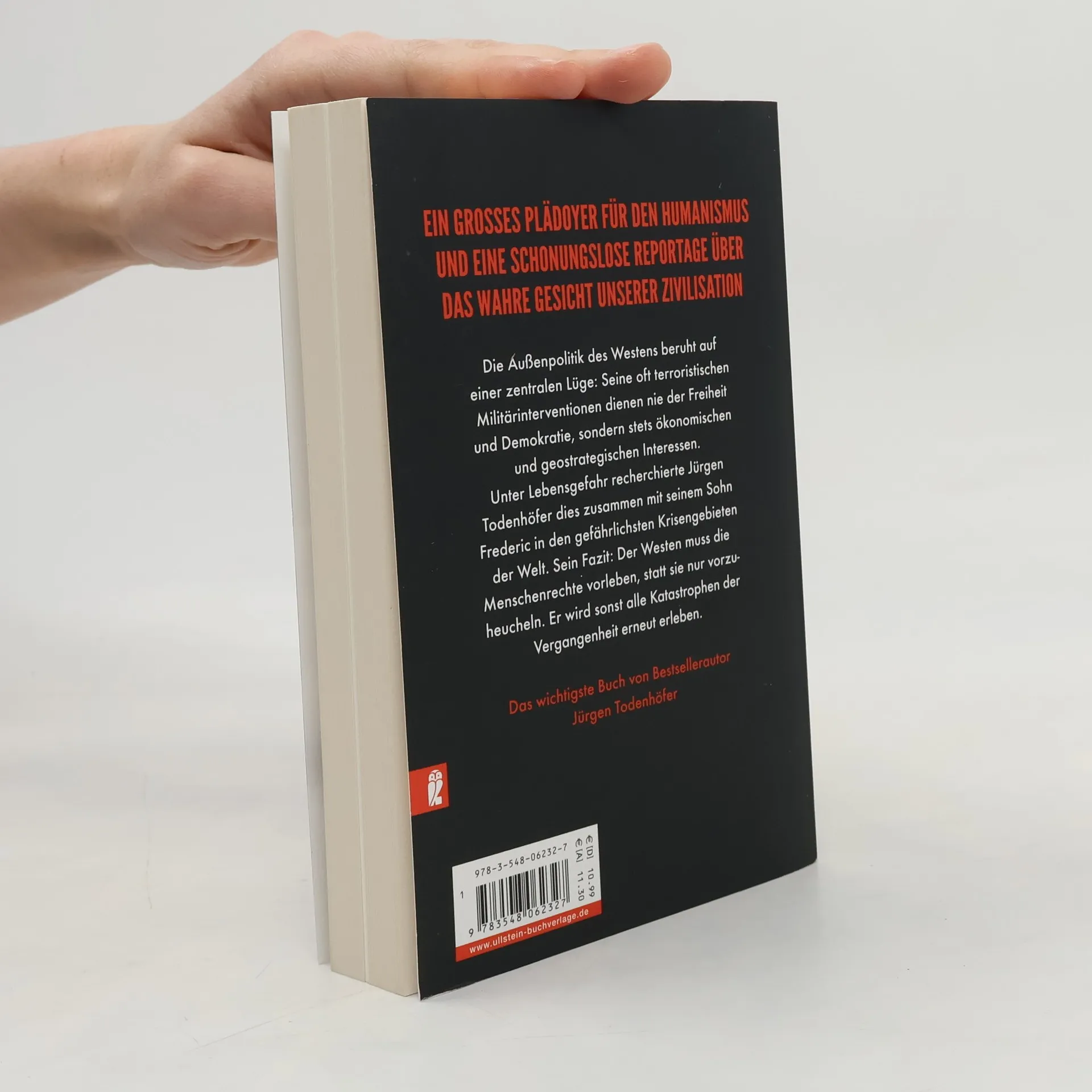 Ein großes Plädoyer für Humanismus, eine schonungslose Reportage über das wahre Gesicht unserer Zivilisation und ein Frontbericht aus den Krisengebieten der Welt – das wichtigste Buch von Bestsellerautor Jürgen Todenhöfer Die Außenpolitik des Westens beruht auf einer zentralen Lüge: Seine oft terroristischen Militärinterventionen dienen nie der Freiheit und Demokratie, sondern stets ökonomischen und geostrategischen Interessen. Unter Lebensgefahr recherchierte Jürgen Todenhöfer dies zusammen mit seinem Sohn Frederic in den gefährlichsten Krisengebieten der Welt. Sein Fazit: Der Westen muss die Menschenrechte vorleben, statt sie nur vorzuheucheln. Und seine Medien müssen damit aufhören, diese Heuchelei zu decken. Der Westen wird sonst alle Katastrophen der Vergangenheit erneut erleben. Er muss andere Völker und Kulturen so behandeln, wie er selbst behandelt werden will. Nur dann hat er eine Zukunft.