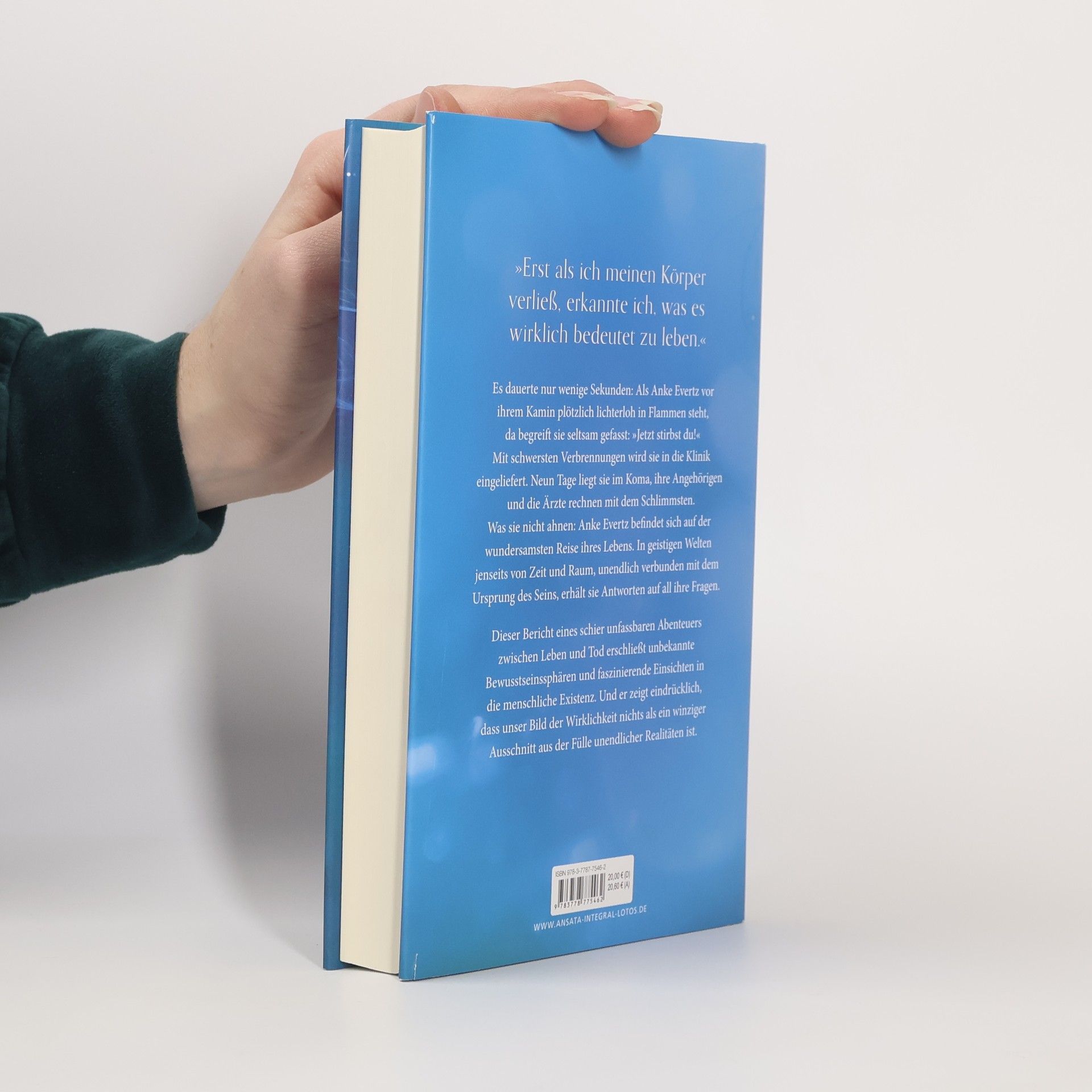 Es dauerte nur wenige Sekunden: Als Anke Evertz vor ihrem Kamin plötzlich lichterloh in Flammen steht, da begreift sie seltsam gefasst: »Jetzt stirbst du!« Mit schwersten Verbrennungen wird sie in die Klinik eingeliefert. Neun Tage liegt sie im Koma, ihre Angehörigen und die Ärzte rechnen mit dem Schlimmsten. Was sie nicht ahnen: Anke Evertz befindet sich auf der wundersamsten Reise ihres Lebens. In geistigen Welten, jenseits von Zeit und Raum, unendlich verbunden mit dem Ursprung des Seins, erhält sie Antworten auf all ihre Fragen. Dieser Bericht eines schier unfassbaren Abenteuers zwischen Leben und Tod erschließt unbekannte Bewusstseinssphären und faszinierende Einsichten in die menschliche Existenz. Und er zeigt eindrücklich, dass unser Bild der Wirklichkeit nichts als ein winziger Ausschnitt aus der Fülle unendlicher Realitäten ist.