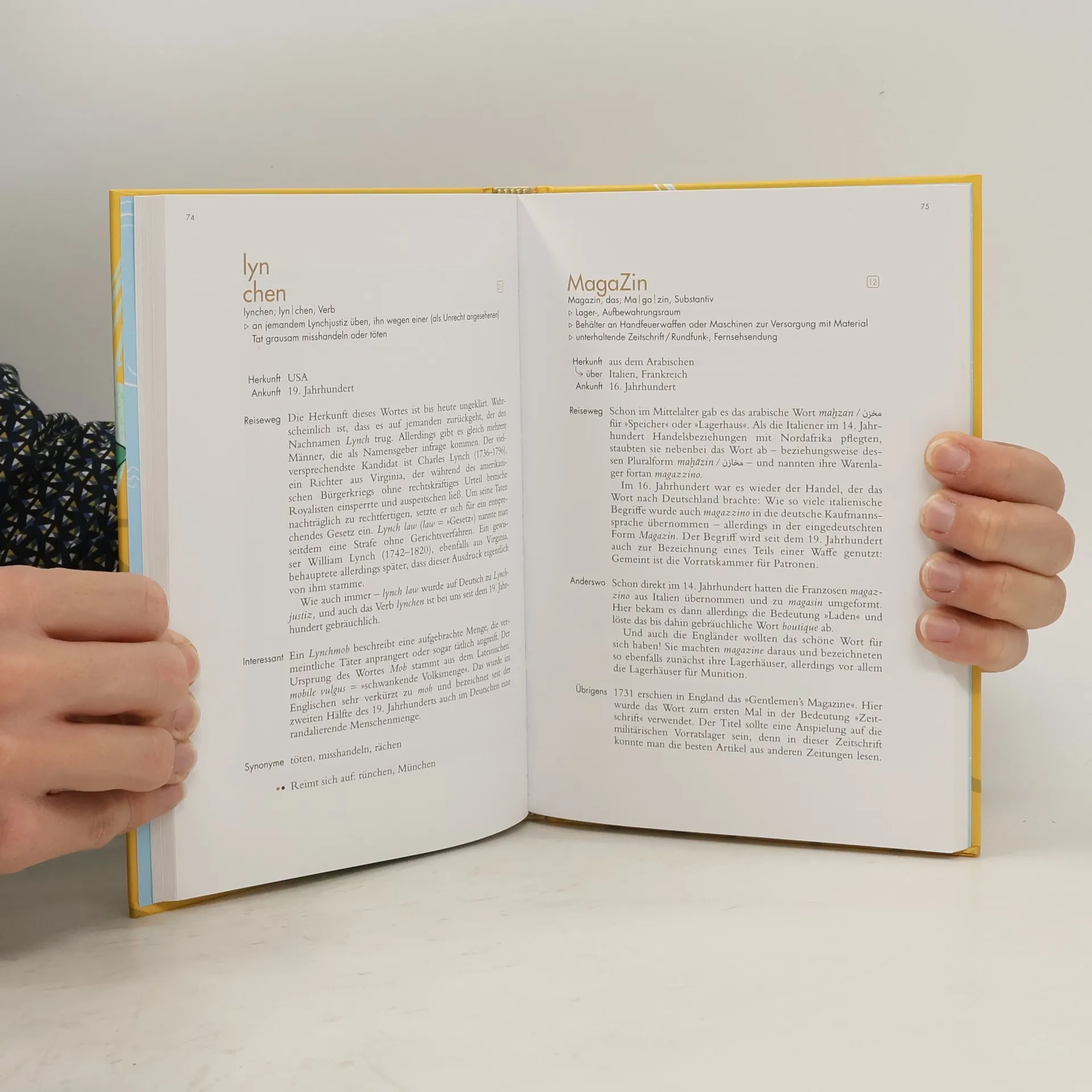„Tohuwabohu“, „Hängematte“, „Bungalow“ und „Bikini“: 100 Wörter, die aus anderen Sprachen ins Deutsche eingewandert sind und die unsere Welt viel bunter machen, stellt dieser liebevoll gestaltete Titel ins Rampenlicht. Zu jedem Wort gibt es spannende und unterhaltsame Fakten rund um Bedeutung und Ursprung sowie Funfacts für Sprachliebhaber wie Synonyme, Reimwörter und Scrabble-Werte. Die liebevollen Illustrationen begleiten einzelne Wörter mit feinem Humor. Die deutsche Sprache hat sich im Laufe der Zeit gewandelt und es kamen aus vielen verschiedenen Sprachen neue Wörter hinzu - und das ist auch gut so! Ebenso wandern auch deutsche Wörter in andere Sprachen aus, wie „Kindergarten“, „Gesundheit“ oder „Butterbrot“. Alle diese Wörter haben gemein, dass sie es wert sind, gesammelt zu werden und ihre Geschichten zu erzählen. Zudem laden sie zum Eintauchen in andere Kulturen, Schmökern und Schmunzeln ein.