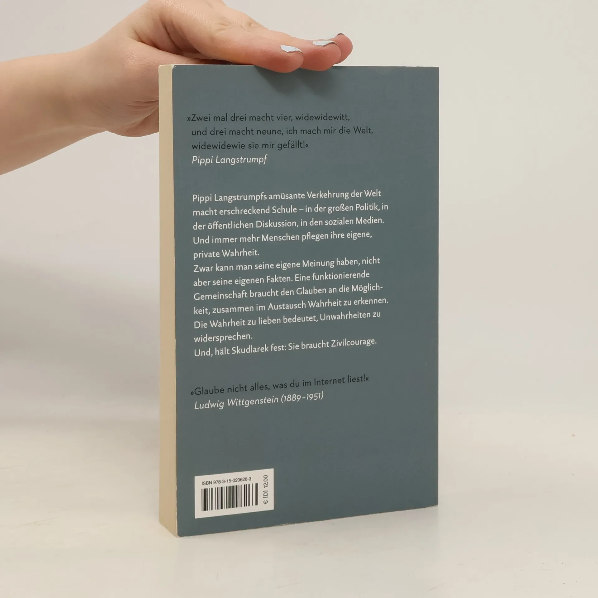 »Ich mach mir die Welt, widewidewie sie mir gefällt«: Pippi Langstrumpfs amüsante Verkehrung der Welt macht heutzutage Schule – in der großen Politik, in der öffentlichen Diskussion, in den sozialen Medien. Jan Skudlarek diskutiert anhand illustrierender Beispiele die damit verbundenen Bedrohungen und Probleme. Er liefert dringend benötigte Orientierungshilfe und Anleitung zum Selber-Denken, um sich in dem Minenfeld aus Fake News, False Flags, Verschwörungstheorien und vergiftendem Zweifel zu behaupten. Eine funktionierende Gemeinschaft braucht den Glauben an die Möglichkeit, zusammen im Austausch Wahrheit zu erkennen. Und, hält Skudlarek fest, sie braucht Zivilcourage: Die Wahrheit zu lieben bedeutet, Unwahrheiten zu widersprechen.