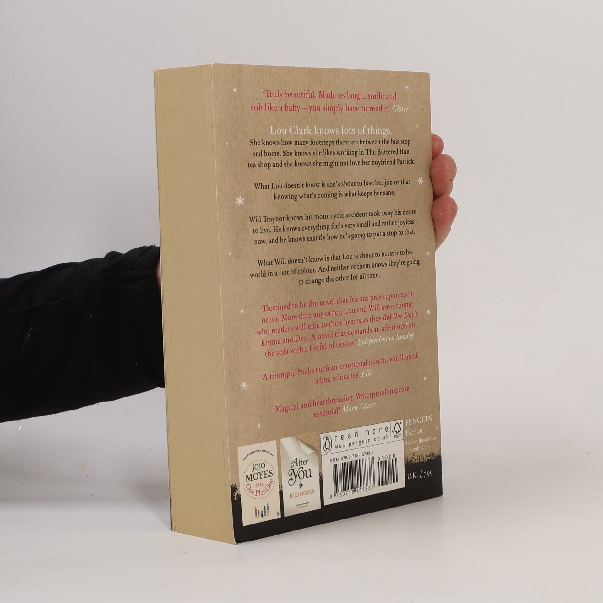 Lou Clark knows lots of things. She knows how many footsteps there are between the bus stop and home. She knows she likes working in The Buttered Bun tea shop and she knows she might not love her boyfriend Patrick. What Lou doesn't know is she's about to lose her job or that knowing what's coming is what keeps her sane. Will Traynor knows his motorcycle accident took away his desire to live. He knows everything feels very small and rather joyless now and he knows exactly how he's going to put a stop to that. What Will doesn't know is that Lou is about to burst into his world in a riot of colour. And neither of them knows they're going to change the other for all time.