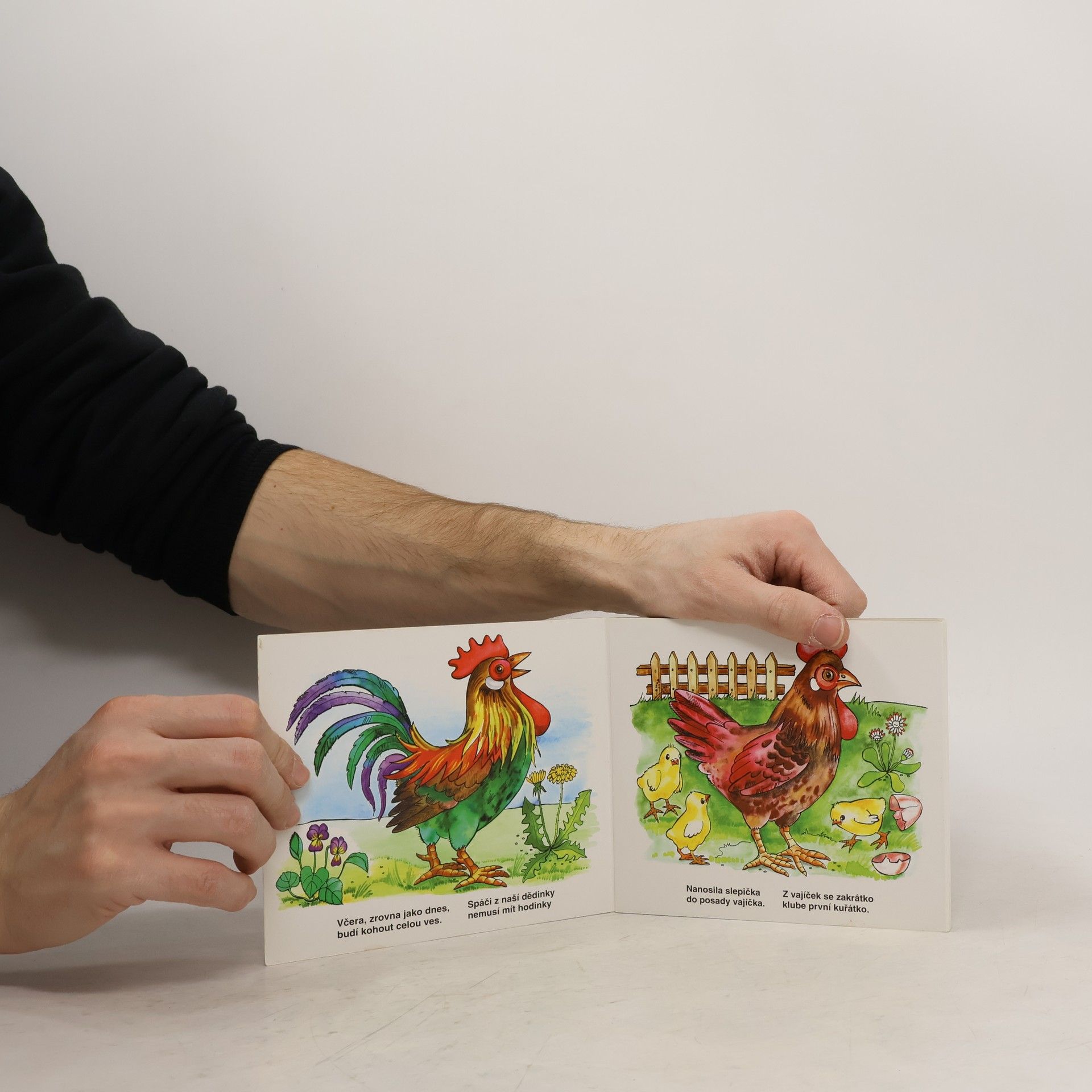 Leporelo s obrázky domácích zvířat a s veršovánkou ke každému z nich.