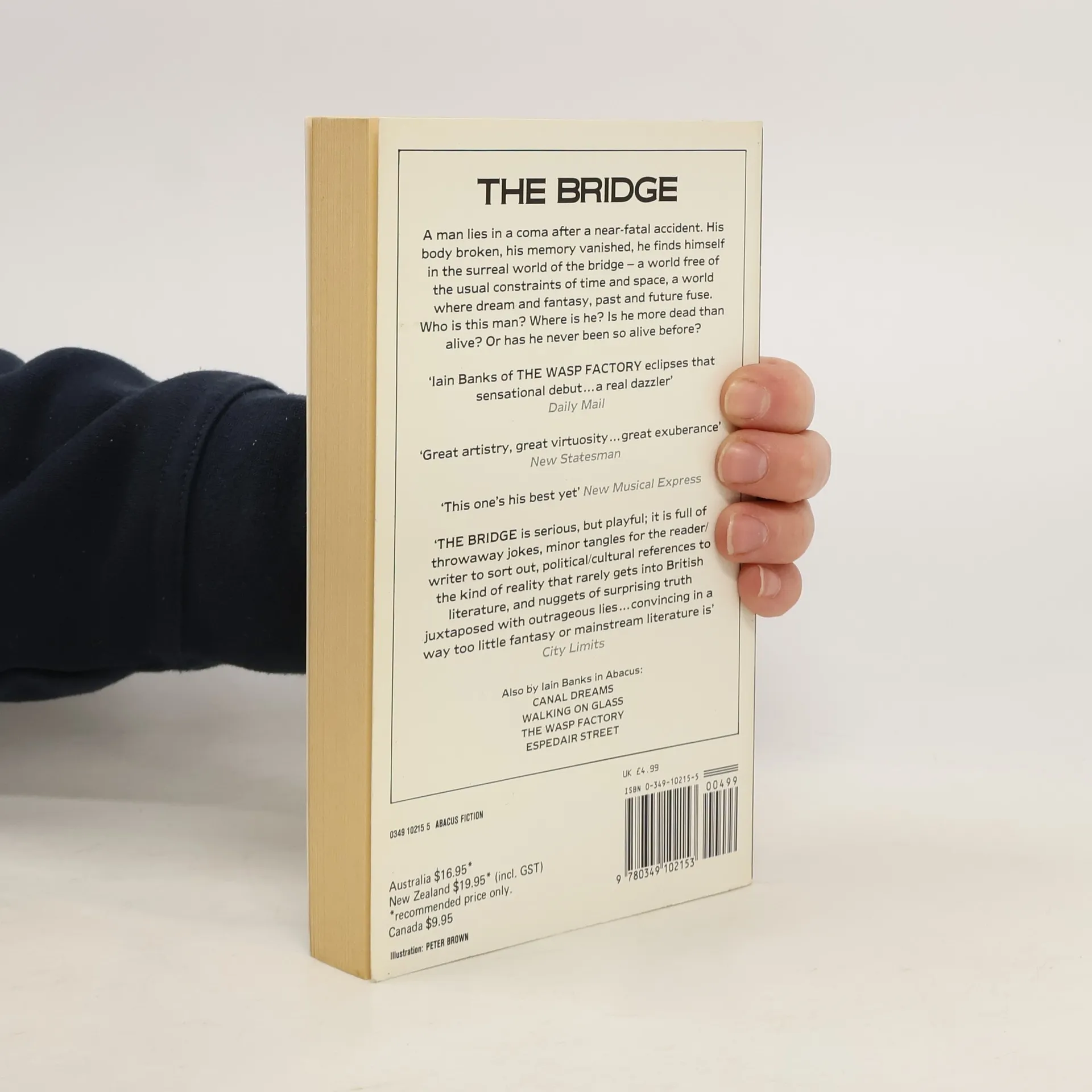 The man who wakes up in the extraordinary world of a bridge has amnesia, and his doctor doesn't seem to want to cure him. Does it matter? Exploring the bridge occupies most of his days. But at night there are his dreams. Dreams in which desperate men drive sealed carriages across barren mountains to a bizarre rendezvous; an illiterate barbarian storms an enchanted tower under a stream of verbal abuse; and broken men walk forever over bridges without end, taunted by visions of a doomed sexuality. Lying in bed unconscious after an accident wouldn't be much fun, you'd think. Oh yes? It depends who and what you've left behind. Which is the stranger reality, day or night? Frequently hilarious and consistently disturbing, THE BRIDGE is a novel of outrageous contrasts, constructed chaos and elegant absurdities.