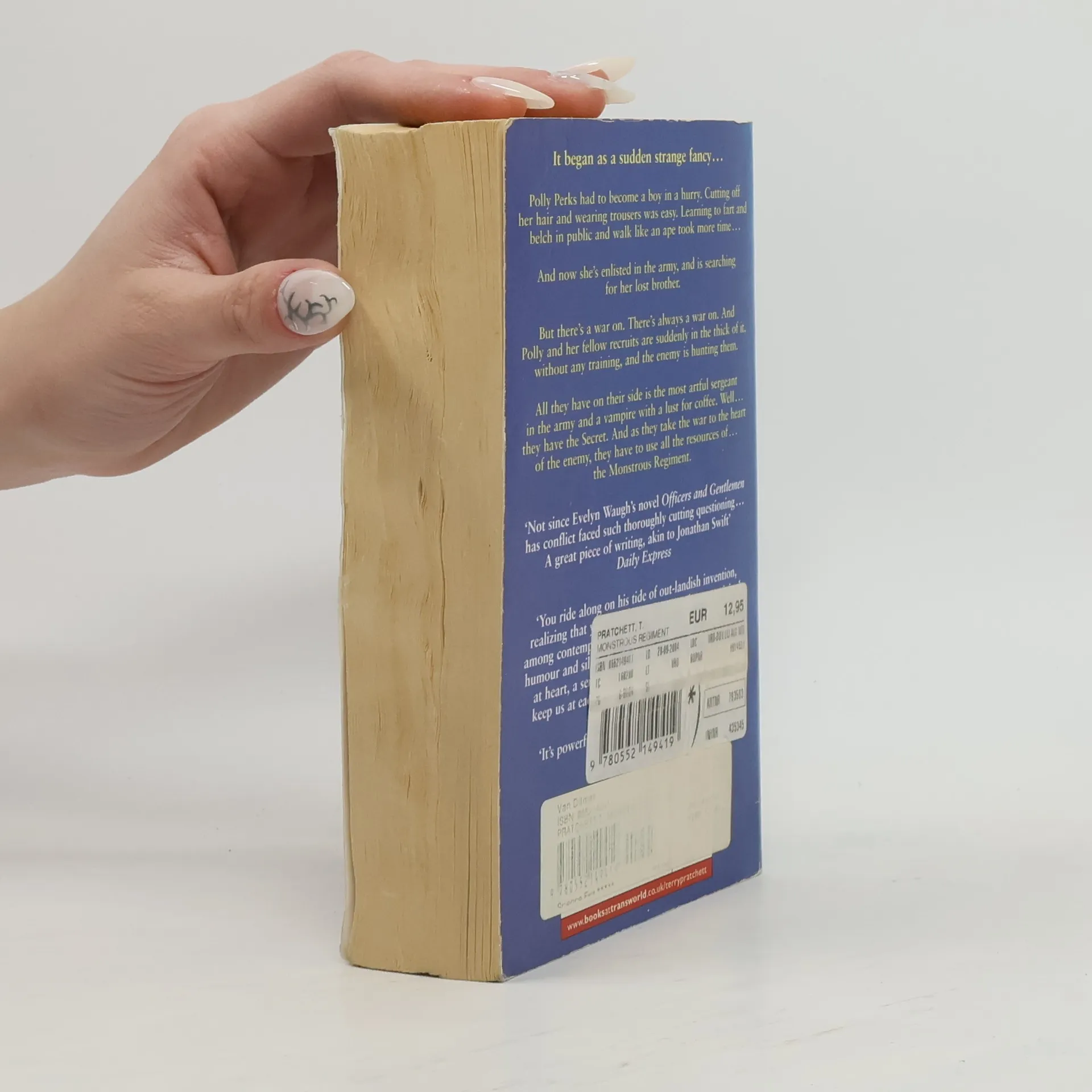It began as a sudden strange fancy . . . Polly Perks had to become a boy in a hurry. Cutting off her hair and wearing trousers was easy. Learning to fart and belch in public and walk like an ape took more time . . . And now she's enlisted in the army, and searching for her lost brother. But there's a war on. There's always a war on. And Polly and her fellow recruits are suddenly in the thick of it, without any training, and the enemy is hunting them. All they have on their side is the most artful sergeant in the army and a vampire with a lust for coffee. Well . . . They have the Secret. And as they take the war to the heart of the enemy, they have to use all the resources of . . . the Monstrous Regiment.