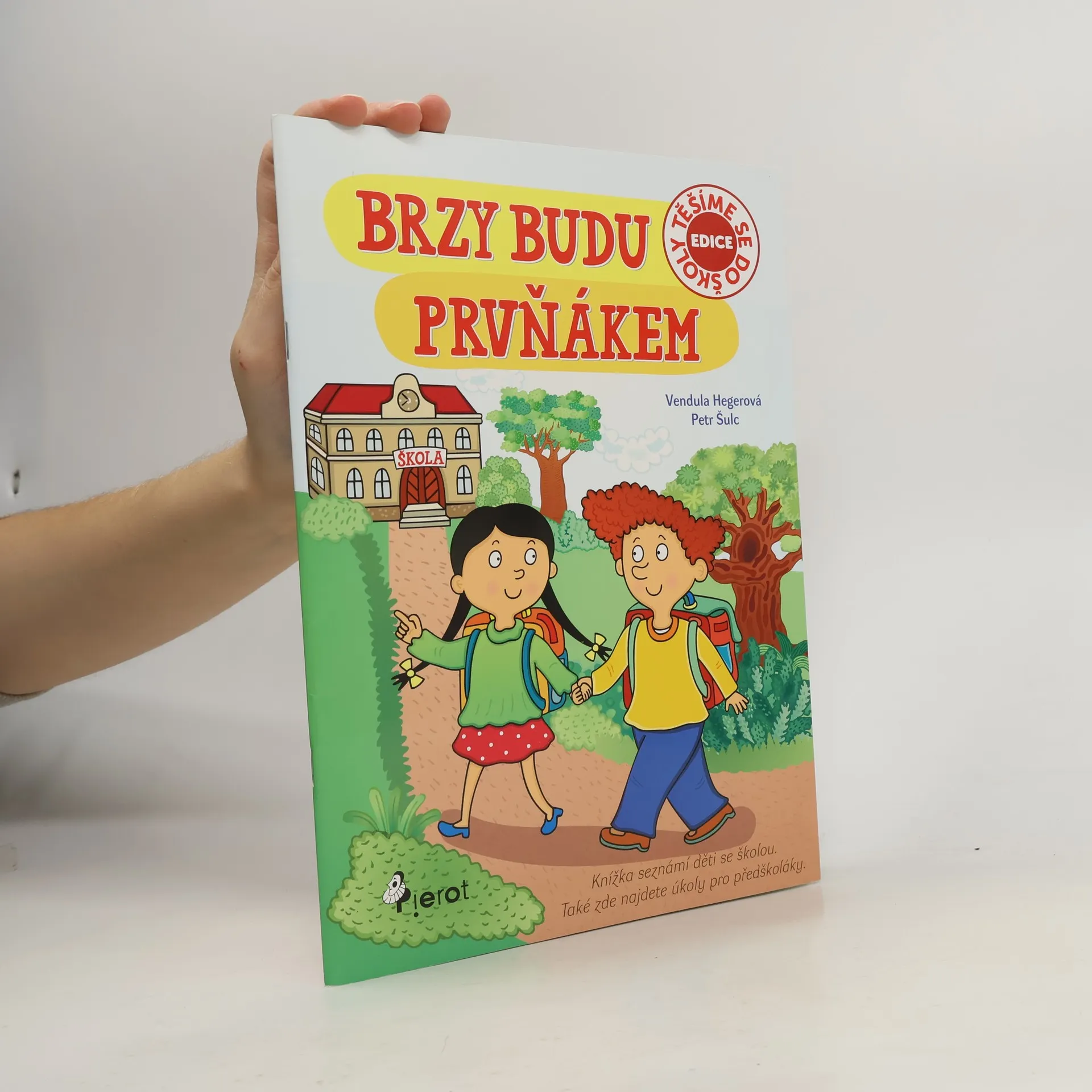 Publikace Brzy budu prvňákem je určena předškolákům, jež čeká nástup do 1. ročníku ZŠ. Kniha popisuje zkušenosti prvňáčka Vítka, který je plný radostného očekávání, ale i pochybností z nového prostředí. Vítek se tak dozvídá, na co si musí dávat pozor při cestě do školy, proč jsou na silnicích dopravní značky a jak se podle nich chovat, a také mnoho dalších užitečných informací, například co dělají pan ředitel, učitelka, uklízečka nebo školník. V titulu je mnoho hravých úkolů, které procvičují pozornost a jemnou motoriku dítěte. Ilustrátorka Vendula Hegerová na klopy obálky doplnila rozvrh a praktické pravítko, které si děti mohou vystřihnout.
