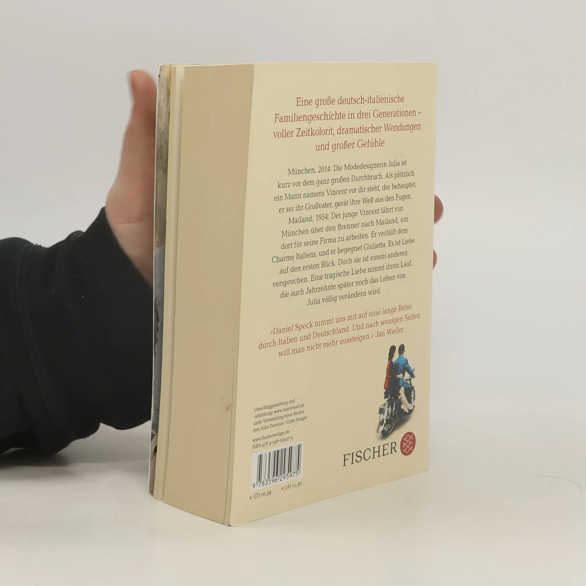 »Eine packende Geschichte – und wunderschön erzählt.« Jan Weiler Daniel Specks Roman »Bella Germania« ist eine große deutsch-italienische Familiengeschichte in drei Generationen – voller Zeitkolorit, dramatischer Wendungen und großer Gefühle. »Er reichte mir ein altes Foto. Ein junges Paar vor dem Mailänder Dom. Die Frau hatte schwarze Haare und sah aus wie ich. Es war, als blickte ich direkt in einen Spiegel. ›Das ist Giulietta‹, sagte er, ›deine Großmutter.‹« München, 2014: Die Modedesignerin Julia ist kurz vor dem ganz großen Durchbruch. Als plötzlich ein Mann namens Vincent vor ihr steht, der behauptet, er sei ihr Großvater, gerät ihre Welt aus den Fugen. Mailand, 1954: Der junge Vincent fährt von München über den Brenner nach Mailand, um dort für seine Firma zu arbeiten. Er verfällt dem Charme Italiens, und er begegnet Giulietta. Es ist Liebe auf den ersten Blick. Doch sie ist einem anderen versprochen. Eine tragische Liebe nimmt ihren Lauf, die auch Jahrzehnte später noch das Leben von Julia völlig verändern wird. »Daniel Speck nimmt uns mit auf eine lange Reise durch Italien und Deutschland. Und nach wenigen Seiten will man nicht mehr aussteigen.« Jan Weiler