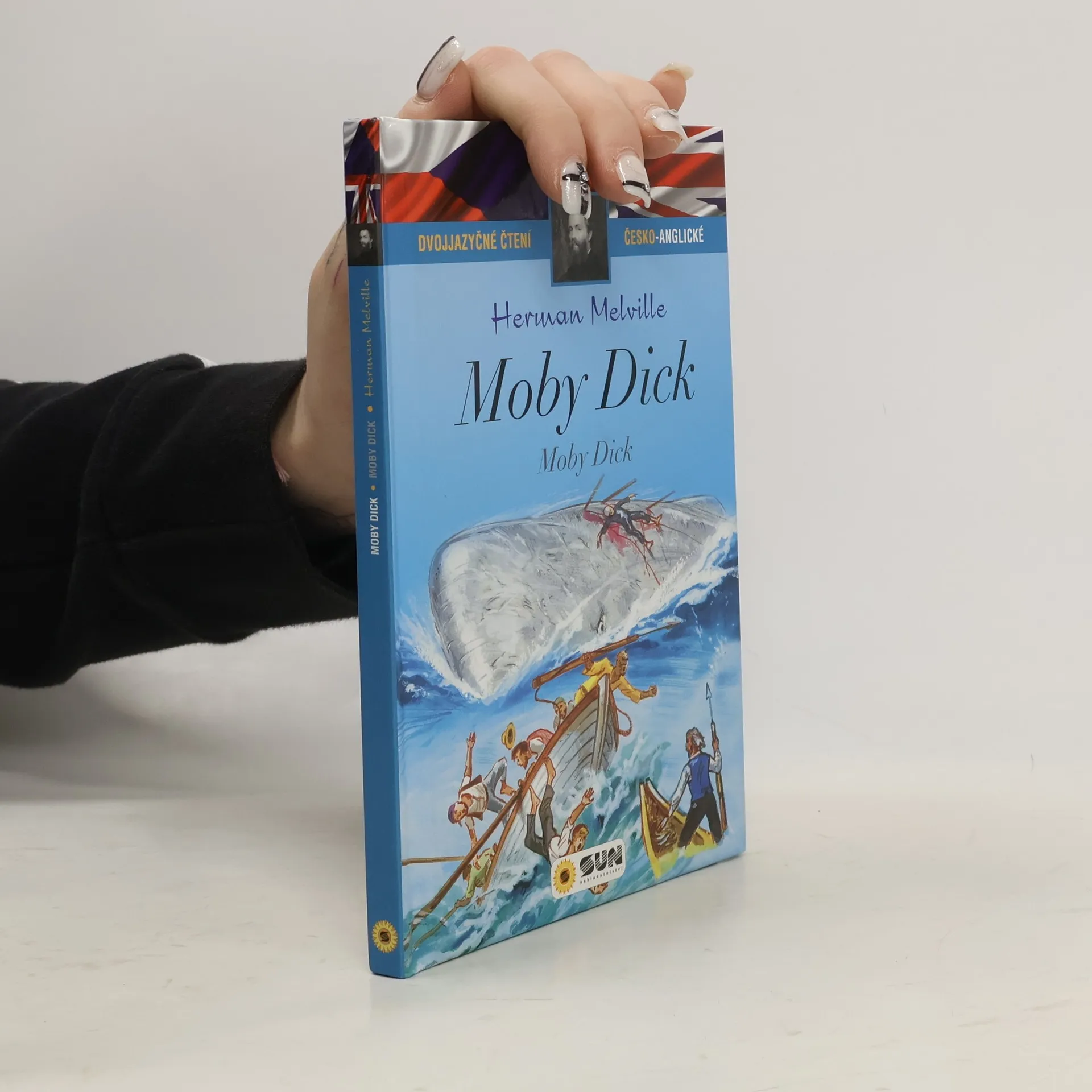 Převyprávění klasického dobrodružného románu. Dvojjazyčná verze pro mírně až středně pokročilé angličtináře. V románu Moby Dick se Melville zamýšlí nad zlem ztělesněným do dvou protagonistů: na jedné straně velryby, která reprezentuje zlo bez citů a ničí vše, s čím se setká, a na druhé straně kapitána Achaba, který ukazuje zlo zatvrzelé, jelikož je to jeho osobní nenávist a touha po pomstě, které ho vedou k velrybě, třebaže riskuje i životy svých mužů. Nakladatelská anotace.