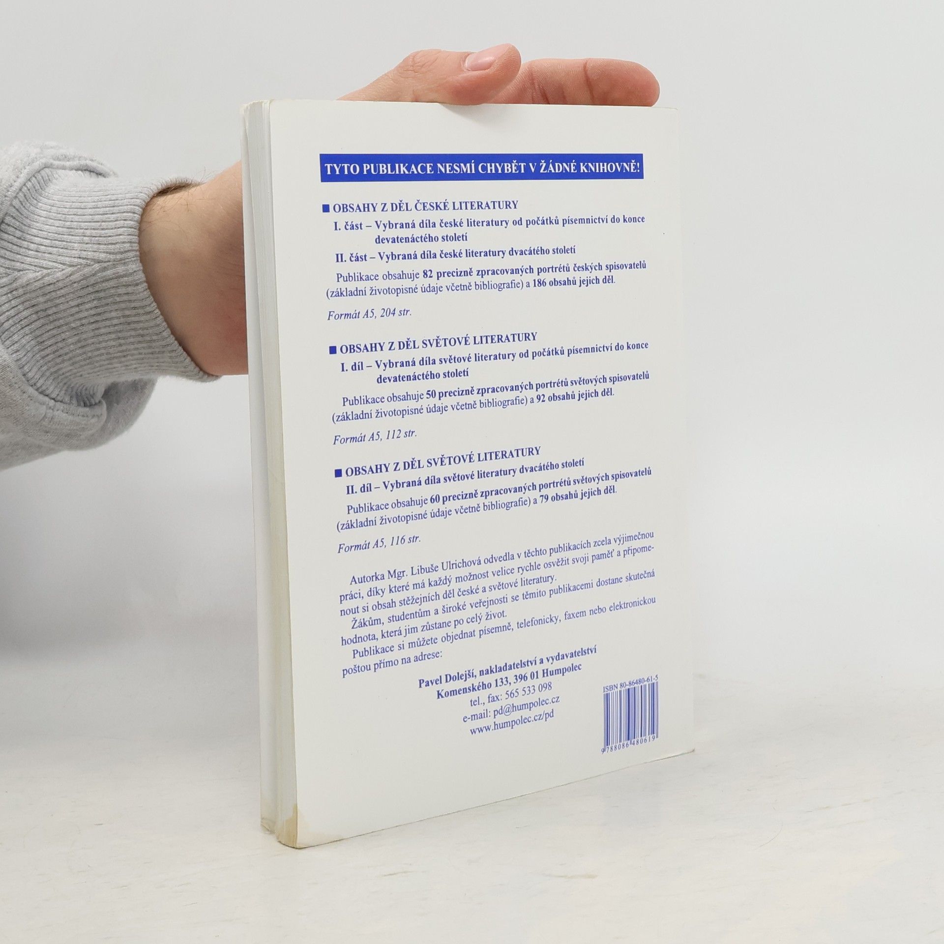 There are currently of book Obsahy z děl světové literatury. I. díl, Vybraná díla světové literatury od počátků písemnictví do konce devatenáctého století (2005) in stock.