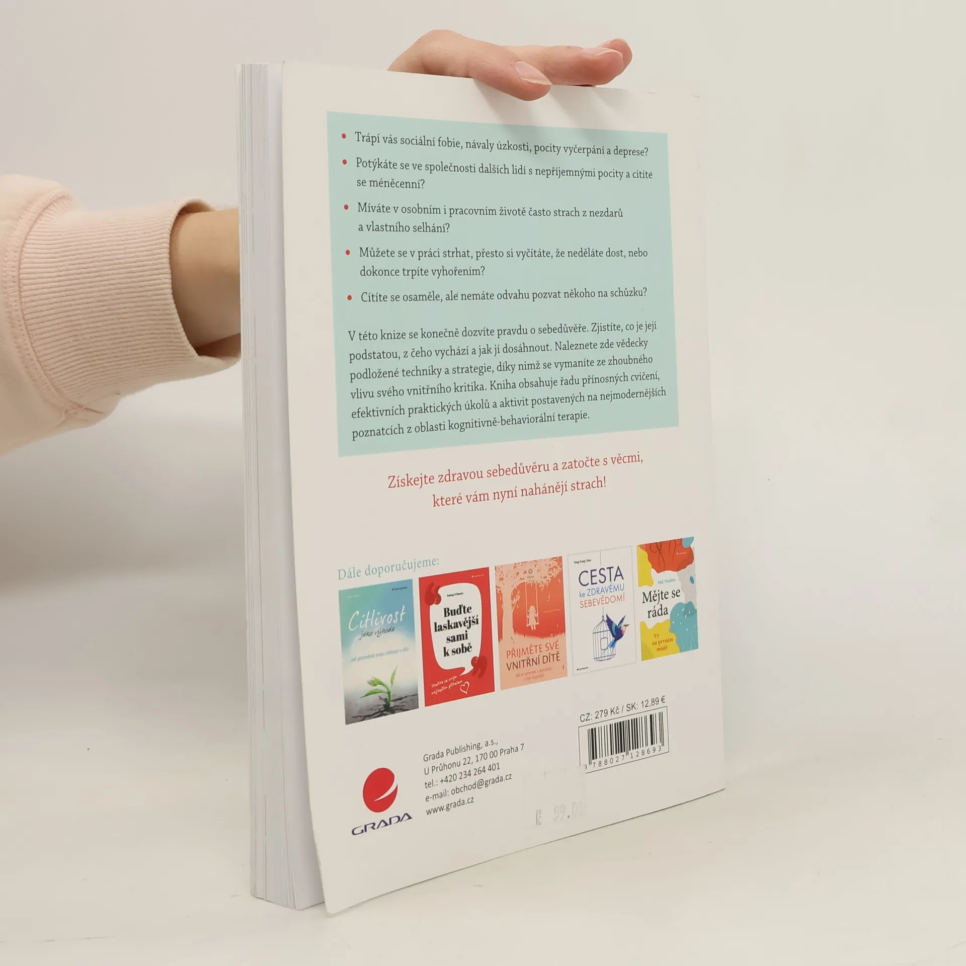 • Trápí vás sociální fobie, návaly úzkosti, pocity vyčerpání a deprese? • Potýkáte se ve společnosti dalších lidí s nepříjemnými pocity a cítíte se méněcenní? • Míváte v osobním i pracovním životě často strach z nezdarů a vlastního selhání? • Můžete se v práci strhat, přesto si vyčítáte, že neděláte dost, nebo dokonce trpíte vyhořením? • Cítíte se osaměle, ale nemáte odvahu pozvat někoho na schůzku? V této knize se konečně dozvíte pravdu o sebedůvěře. Zjistíte, co je její podstatou, z čeho vychází a jak jí dosáhnout. Naleznete zde vědecky podložené techniky a strategie, díky nimž se vymaníte ze zhoubného vlivu svého vnitřního kritika. Kniha obsahuje řadu přínosných cvičení, efektivních praktických úkolů a aktivit postavených na nejmodernějších poznatcích z oblasti kognitivně-behaviorální terapie. Získejte zdravou sebedůvěru a zatočte s věcmi, které vám nyní nahánějí strach!