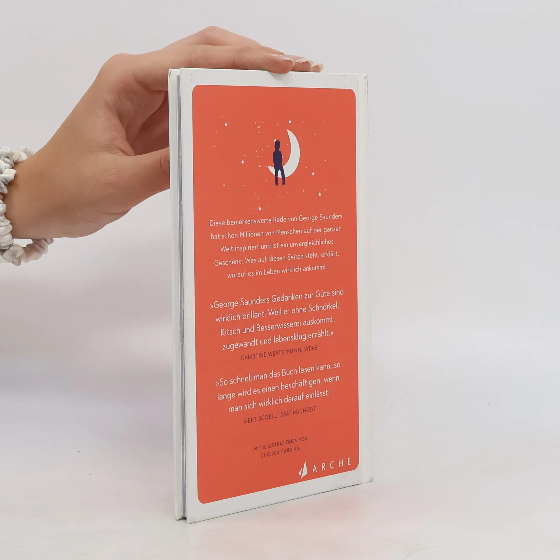 Herzlichen Glückwunsch, übrigens … … zu diesem besonderen Buch. Es beinhaltet eine kurze Rede des großen Schriftstellers George Saunders, die dieser 2013 vor Studenten der Universität von Syracuse gehalten hat. Diese Rede ging anschließend um die Welt und wurde innerhalb weniger Tage von mehr als einer Million Menschen gelesen. Sie füllt nur wenige Seiten, doch was auf diesen wenigen Seiten steht, ist ein unvergleichliches Geschenk: Saunders sagt, worauf es im Leben wirklich ankommt – und hat dafür beflügelnde Worte gefunden, die jeder Mensch gelesen haben sollte.