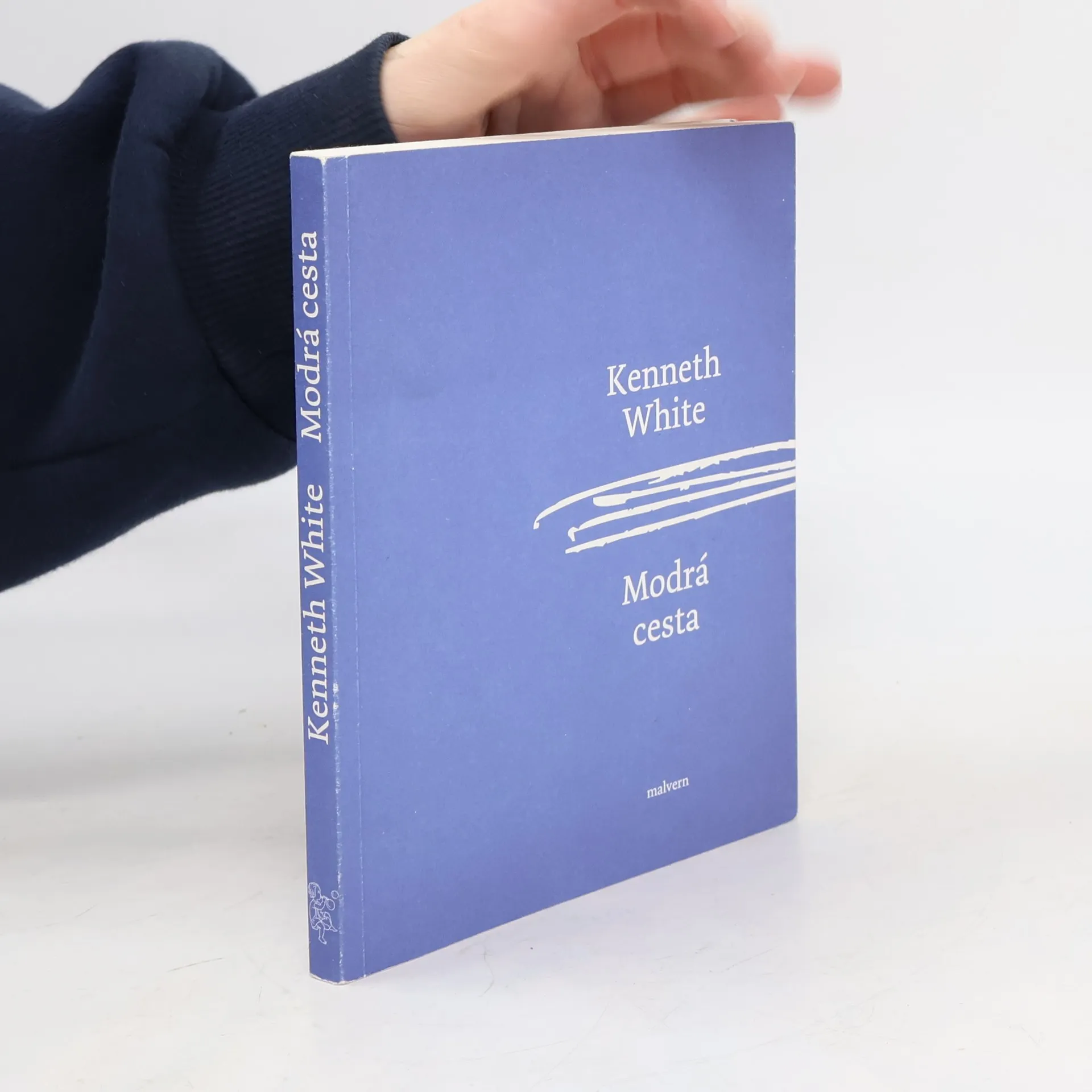 „Cílem je jít co možná nejdál – až na konec sebe samého – dokud nedojdete do kraje, kde se čas proměňuje v prostor, kde se věci zjevují ve své nahotě a kde vítr nemá jméno.“ Modrá cesta skotského básníka Kennetha Whitea je zakládajícím dílem geopoetiky, filozofického směru, lépe řečeno hnutí, dotýkajícího se základů lidské existence na zemi. Klíčovým pojmem tu je intelektuální nomadismus, překonání hranic vytyčených evropskou kulturou a civilizací. Waybook (kniha cesty), jak Modrou cestu White sám nazývá, v sobě skrývá deník, cestopis, reportáž, etnologickou studii, filozofický traktát a lyrickou báseň zároveň. Čtenáře v ní vede přes Montréal, Québec, řeku Saguenay dál na sever. Doufá, že mu s jejím hledáním pomohou původní obyvatelé severu. Romantické vidění Indiánů jako urozených divochů ale vezme za své v první indiánské rezervaci, sužované neřestmi alkoholu a hazardu, civilizačními chorobami a chudobou. Cesta tedy musí vést ještě dál, do krajiny bez lidí, kterou znají jen rok od roku řídnoucí stáda karibu. Modrá cesta spojuje citlivé poetické postřehy s ostrou kritikou západní společnosti, jejího konzumu a povrchní morálky, i když White tak vždy činí se sobě vlastním humorem.