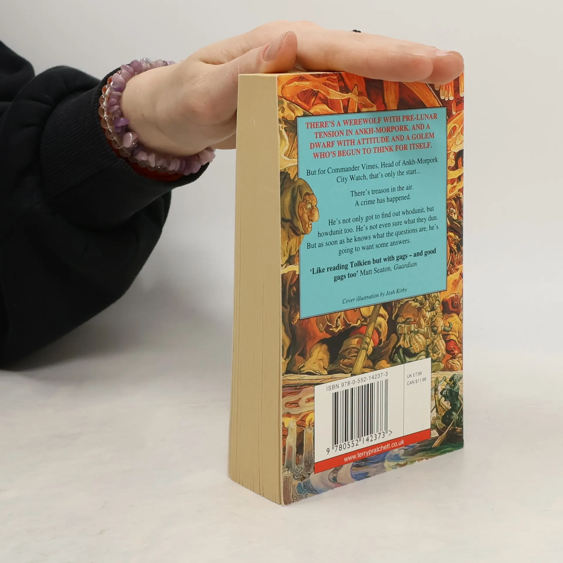 There's a werewolf with pre-lunar tension in Ankh-Morpork and a dwarf with attitude and a golem who's begun to think for itself. But for Commander Vimes, Head of Ankh-Morpork City Watch, that's only the start... There's treason in the air. A crime has happened. He's not only got to find out whodunit, but howdunit too. He's not even sure what they dun. But as soon as he knows what the questions are, he's going to want some answers.