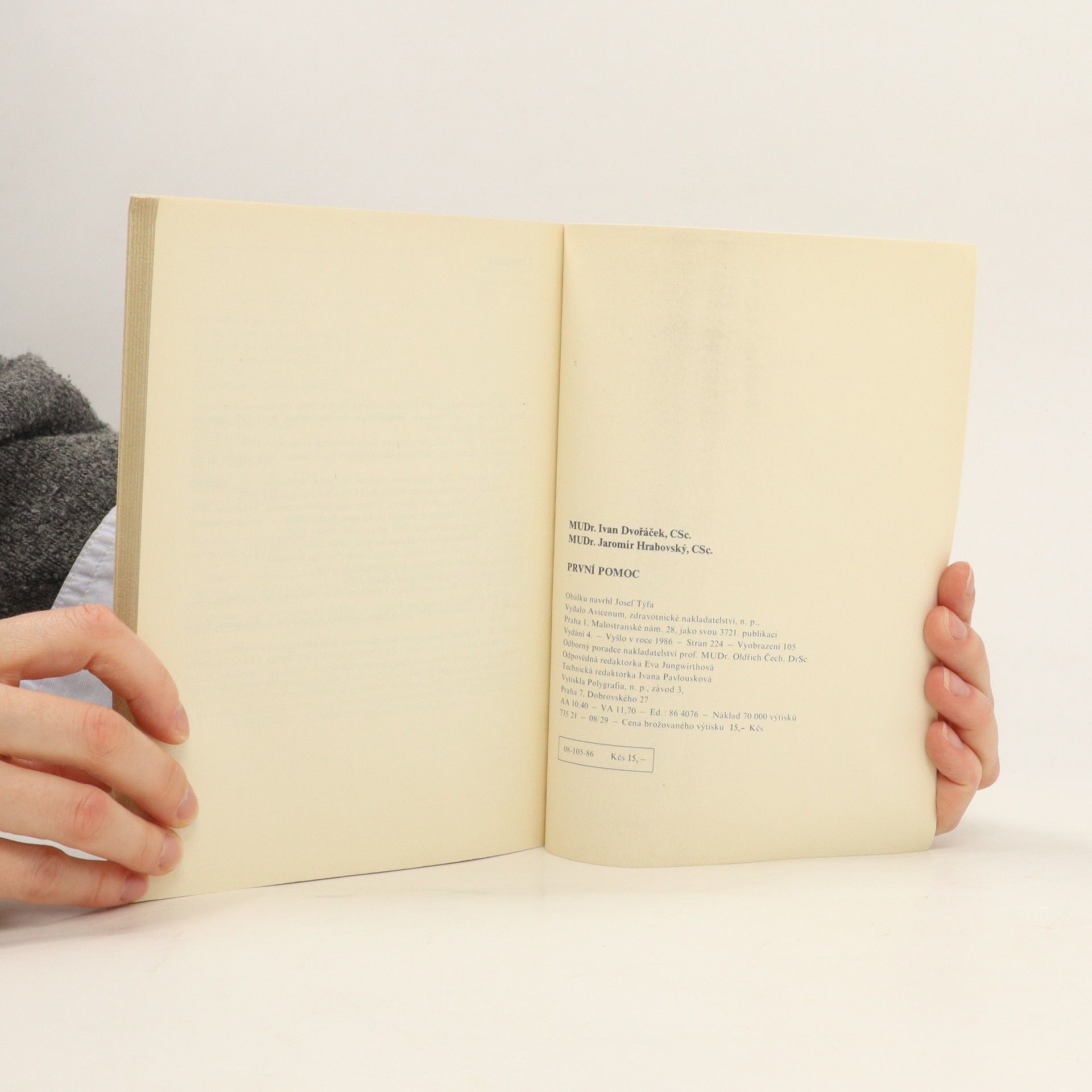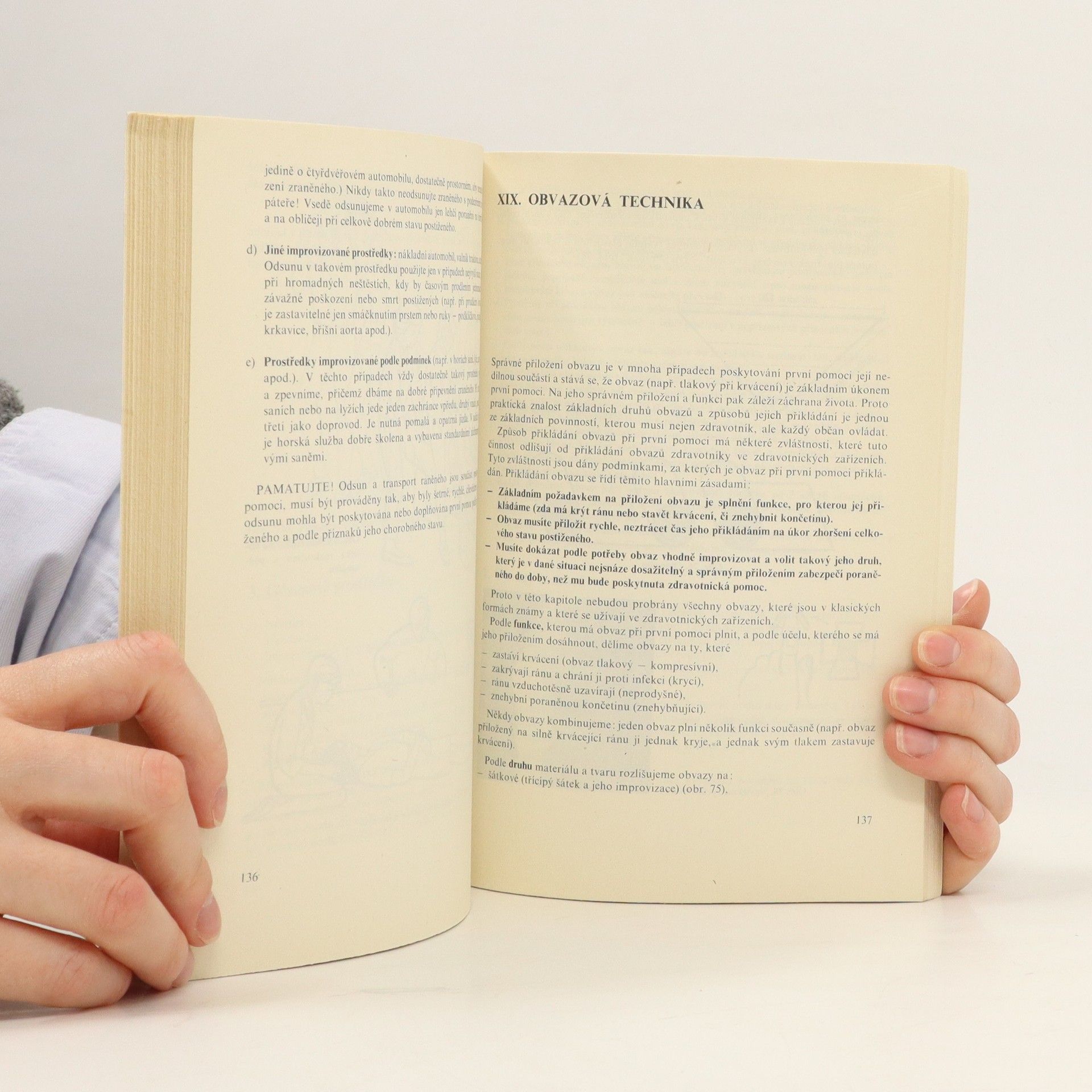 Učebnice pro zdravotnické školy. Příručka seznamuje s nejdůležitějšími postupy při poskytování první pomoci, zejména při stavech bezprostředního ohrožení života. Po výkladu o struktuře a základních funkcích organismu informuje o provádění neodkladnéresuscitace, o první pomoci v případě bezvědomí, šoku, krvácení, závažných i menších poranění, akutních otravách apod.