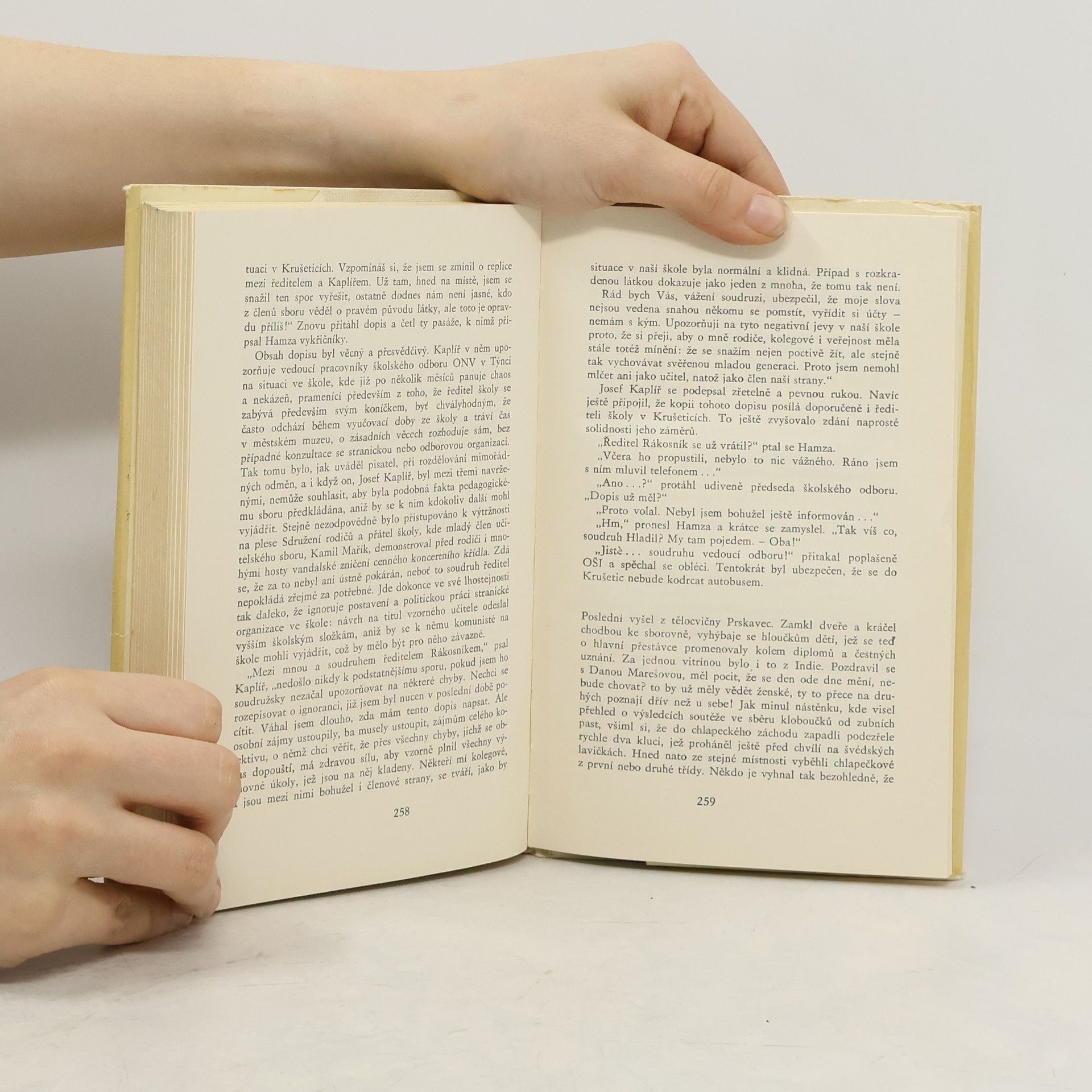 Hrdinou románu, je profesor, který je pro nekompromisní postoje přeložen z gymnázia na devítiletku a propadá trpné odevzdanosti v osud a kterého teprve krize v manželství a vztahy ve škole přinutí k novému postoji k životu. Román ze školního prostředí je ironickou sondou do běžného života učitelského sboru maloměšťské devítiletky v polovině šedesátých let.