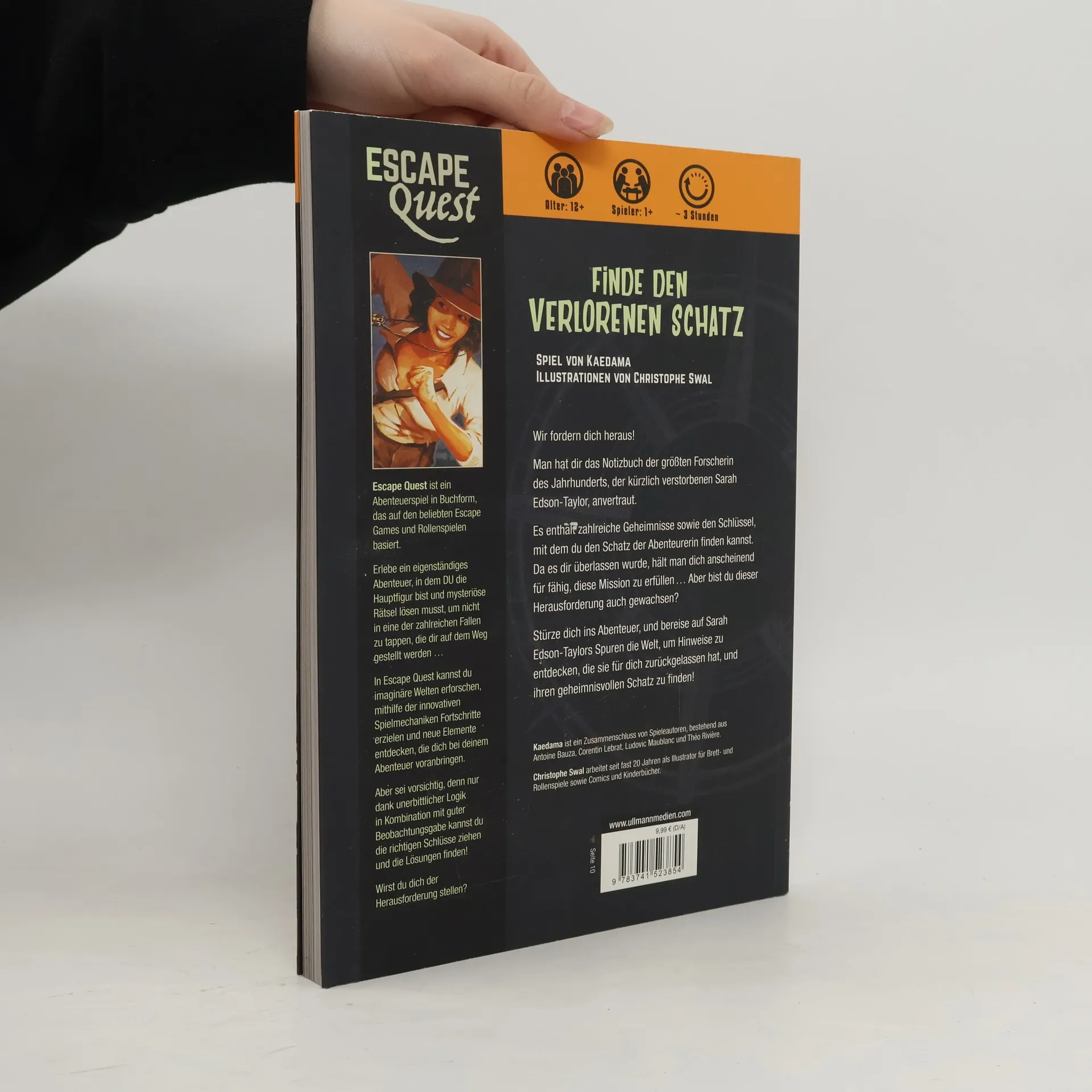 Beschreibung: Escape Quest ist ein Abenteuerspiel in Buchform, das auf den beliebten Escape Games und Rollenspielen basiert. Der Leser erlebt sein eigenes Abenteuer, indem er zur Hauptfigur wird. Von einem mysteriösen Rätsel zum anderen reist er in Band 1 auf den Spuren einer berühmten Entdeckerin um die Welt. Nur unerbittliche Logik in Kombination mit guter Beobachtungsgabe können hier helfen!