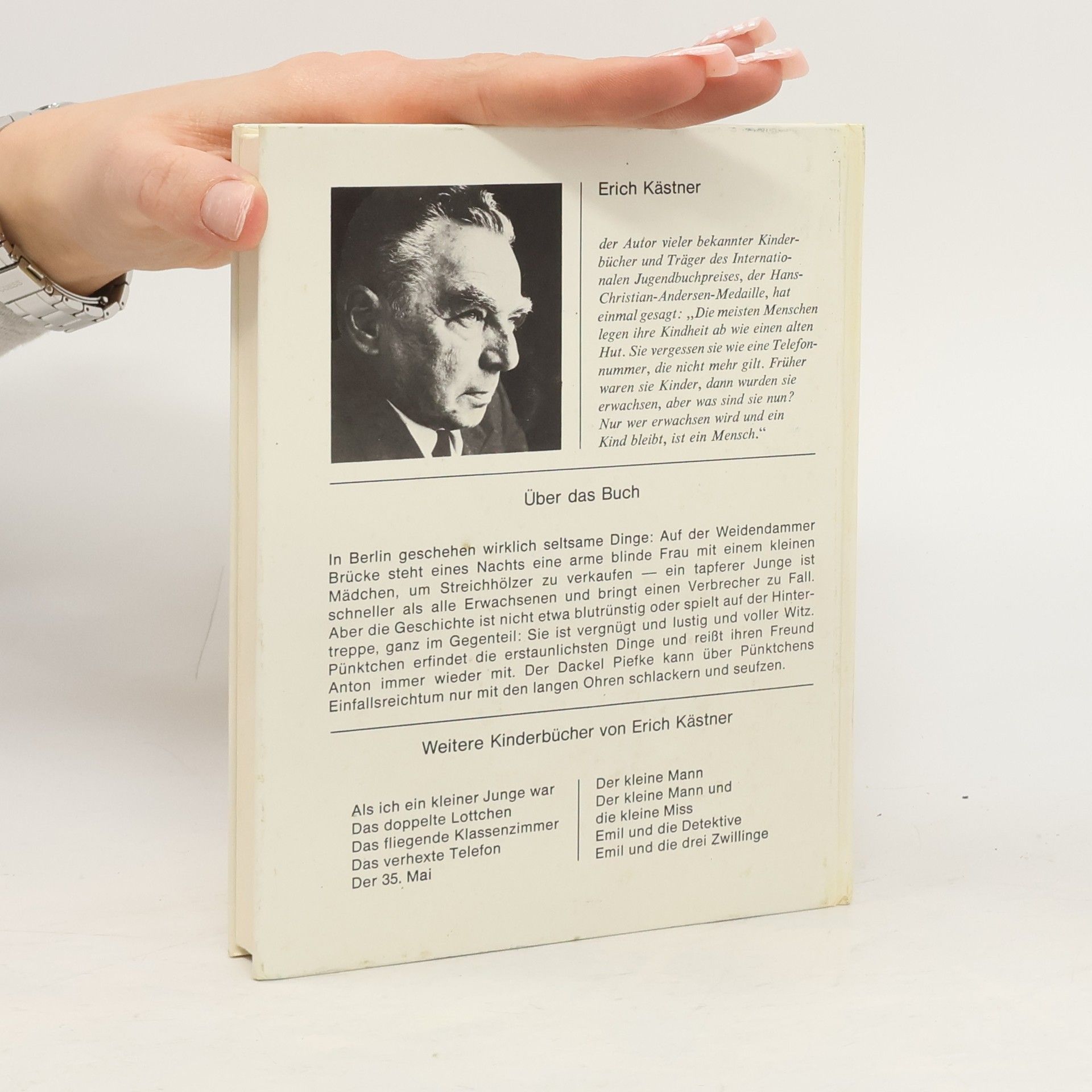Abend für Abend schleicht Pünktchen sich aus ihrem Zimmer, um mitten in Berlin Streichhölzer zu verkaufen. Und das, obwohl ihre Eltern viel Geld haben und ihr jeden Wunsch erfüllen. Ganz anders geht es Anton, der kaum weiß, wo er die nächste Mahlzeit hernehmen soll. Obwohl die beiden in verschiedenen Welten leben, sind sie dicke Freunde. Und das ist gut so: Denn als sich herausstellt, dass Diebe das Haus von Pünktchens Eltern ausrauben wollen, ist Anton mit Mut und Tatkraft zur Stelle! Das zweite Kinderbuch von Erich Kästner wurde mehrmals mit großem Erfolg verfilmt.