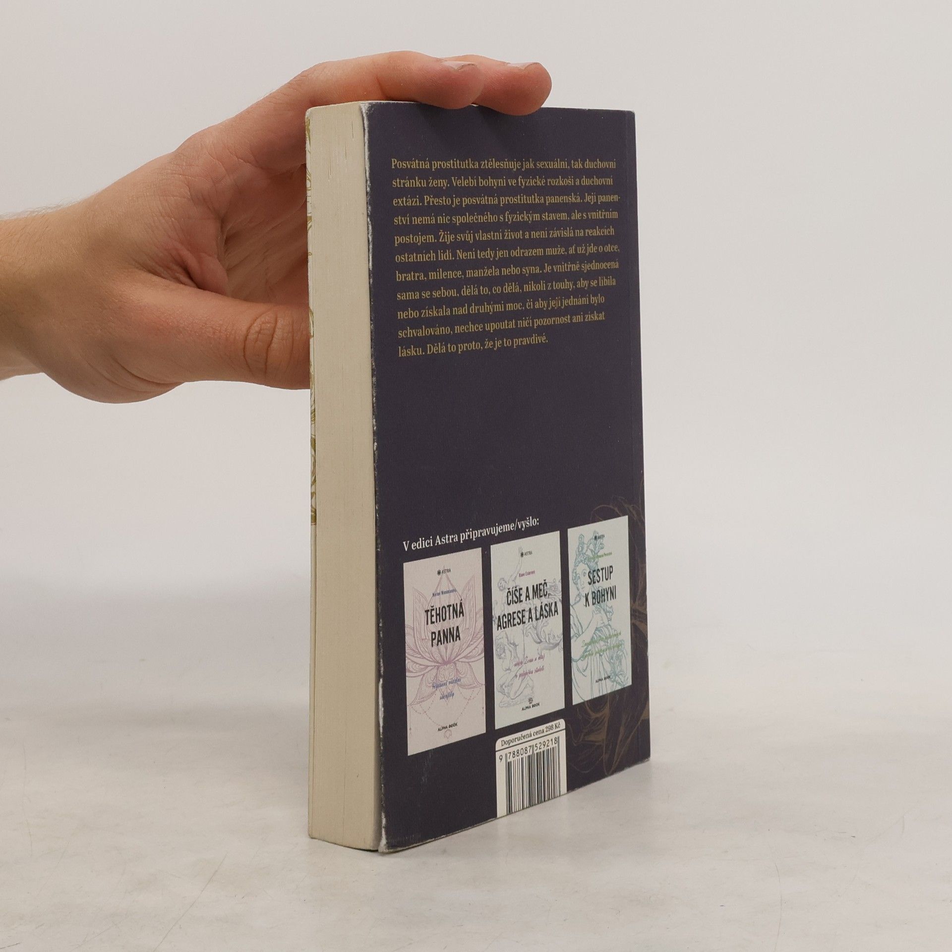 Posvátná prostitutka ztělesňuje jak sexuální, tak duchovní stránku ženy. Velebí bohyni ve fyzické rozkoši a duchovní extázi. Přesto je posvátná prostitutka panenská. Její panenství nemá nic společného s fyzickým stavem, ale s vnitřním postojem. Žije svůj vlastní život a není závislá na reakcích ostatních lidí. Není tedy jen odrazem muže, ať už jde o otce, bratra, milence, manžela nebo syna. Je vnitřně sjednocená sama se sebou, dělá to, co dělá, nikoli z touhy, aby se líbila nebo získala nad druhými moc, či aby její jednání bylo schvalováno, nechce upoutat ničí pozornost ani získat lásku. Dělá to proto, že je to pravdivé. Pochopení úlohy posvátné prostitutky, lidské ženy, která ztělesňuje vlastnosti jak bohyně, tedy spirituality, tak fyzické lásky, může pomoct rozpoznat a respektovat božské vlastnosti projevující se v každém člověku a zároveň přinést naplnění, které ve vztazích mezi mužem a ženou stále tak zoufale chybí. Kniha vychází s předmluvou Marion Woodmanové.