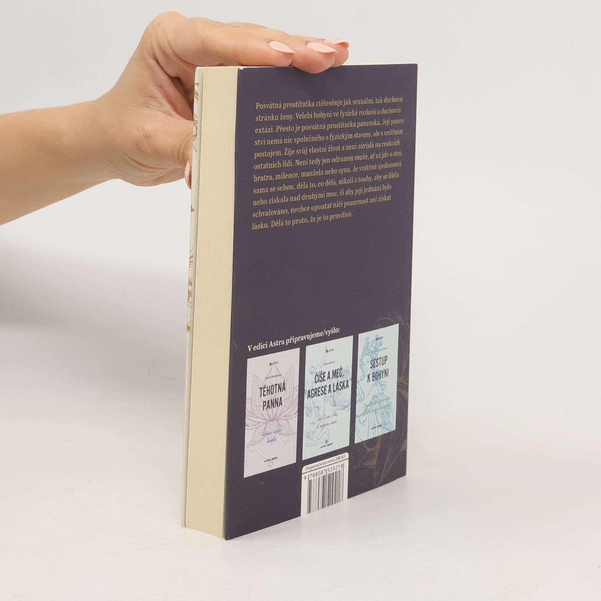 Posvátná prostitutka ztělesňuje jak sexuální, tak duchovní stránku ženy. Velebí bohyni ve fyzické rozkoši a duchovní extázi. Přesto je posvátná prostitutka panenská. Její panenství nemá nic společného s fyzickým stavem, ale s vnitřním postojem. Žije svůj vlastní život a není závislá na reakcích ostatních lidí. Není tedy jen odrazem muže, ať už jde o otce, bratra, milence, manžela nebo syna. Je vnitřně sjednocená sama se sebou, dělá to, co dělá, nikoli z touhy, aby se líbila nebo získala nad druhými moc, či aby její jednání bylo schvalováno, nechce upoutat ničí pozornost ani získat lásku. Dělá to proto, že je to pravdivé. Pochopení úlohy posvátné prostitutky, lidské ženy, která ztělesňuje vlastnosti jak bohyně, tedy spirituality, tak fyzické lásky, může pomoct rozpoznat a respektovat božské vlastnosti projevující se v každém člověku a zároveň přinést naplnění, které ve vztazích mezi mužem a ženou stále tak zoufale chybí. Kniha vychází s předmluvou Marion Woodmanové.