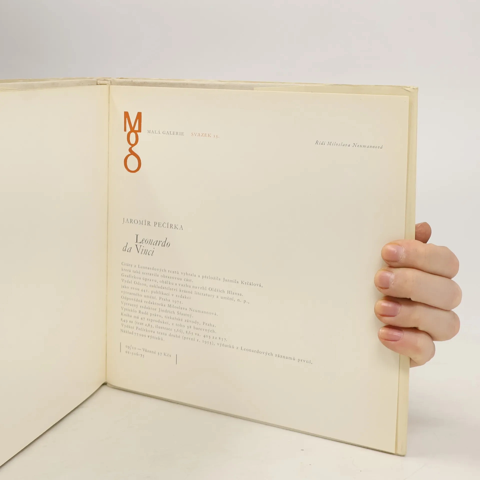 Kniha má 47 reprodukcí, z toho 38 barevných. Citáty z Leonardových textů vybrala a přeložila Jarmila Krčálová, která také sestavila obrazovou část