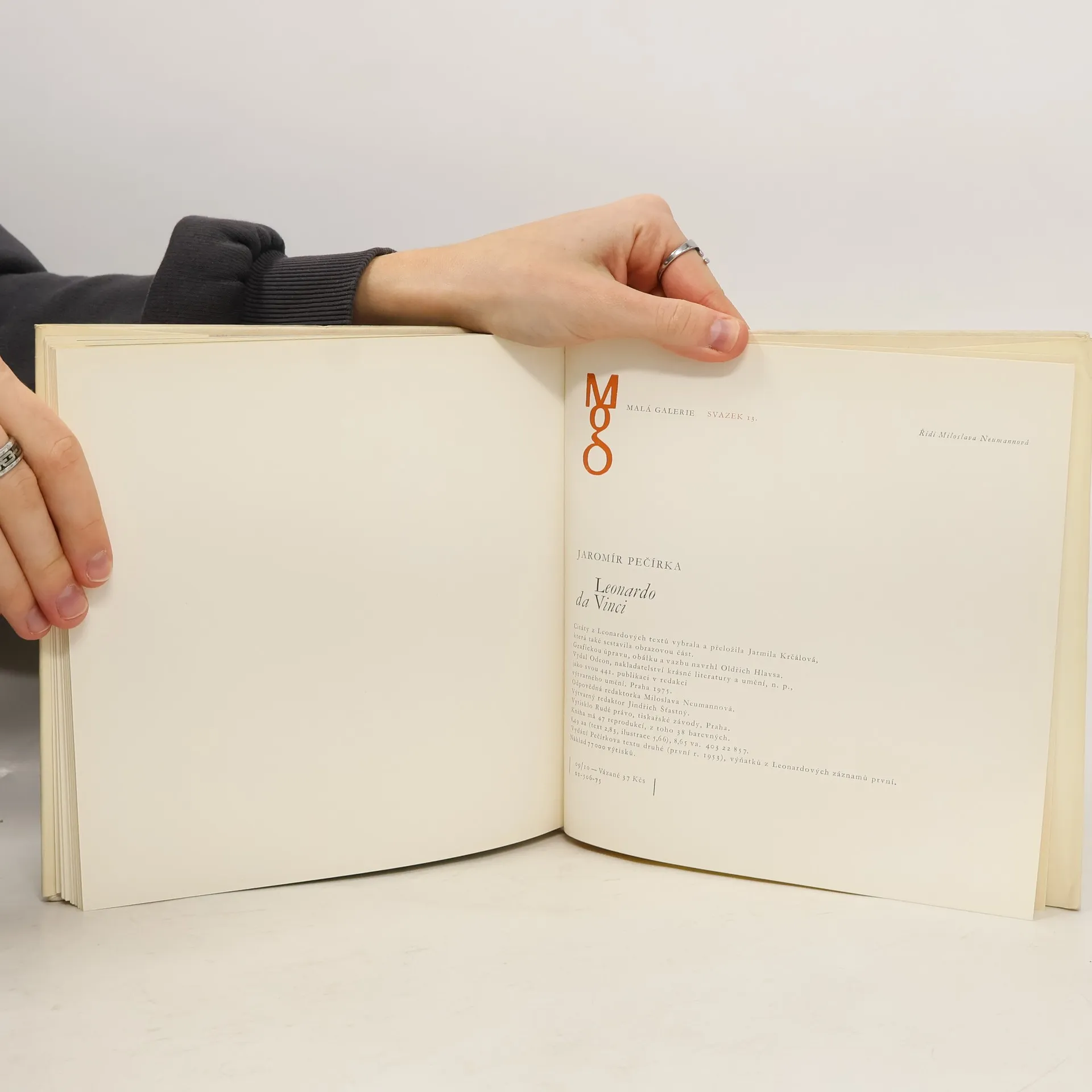 Kniha má 47 reprodukcí, z toho 38 barevných. Citáty z Leonardových textů vybrala a přeložila Jarmila Krčálová, která také sestavila obrazovou část