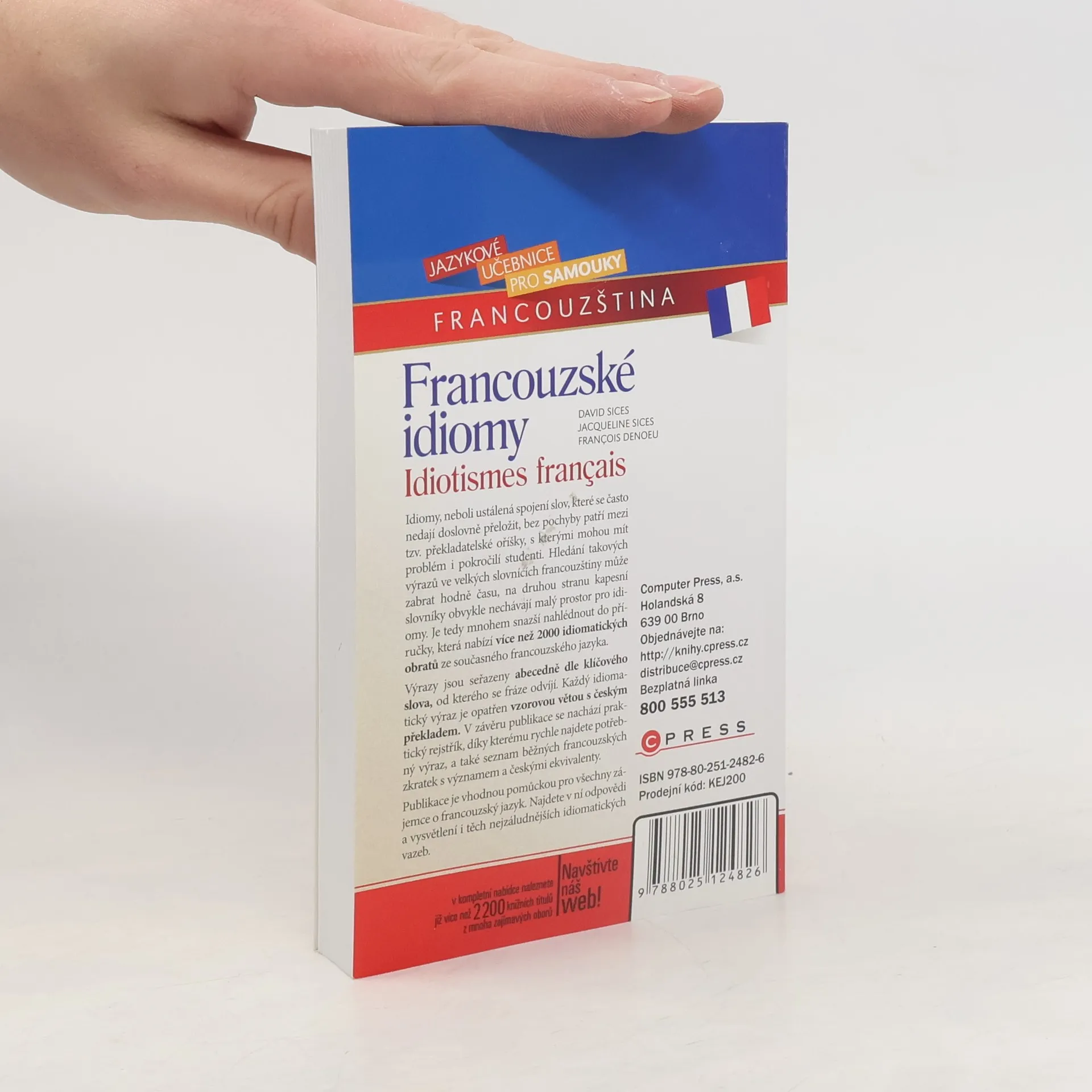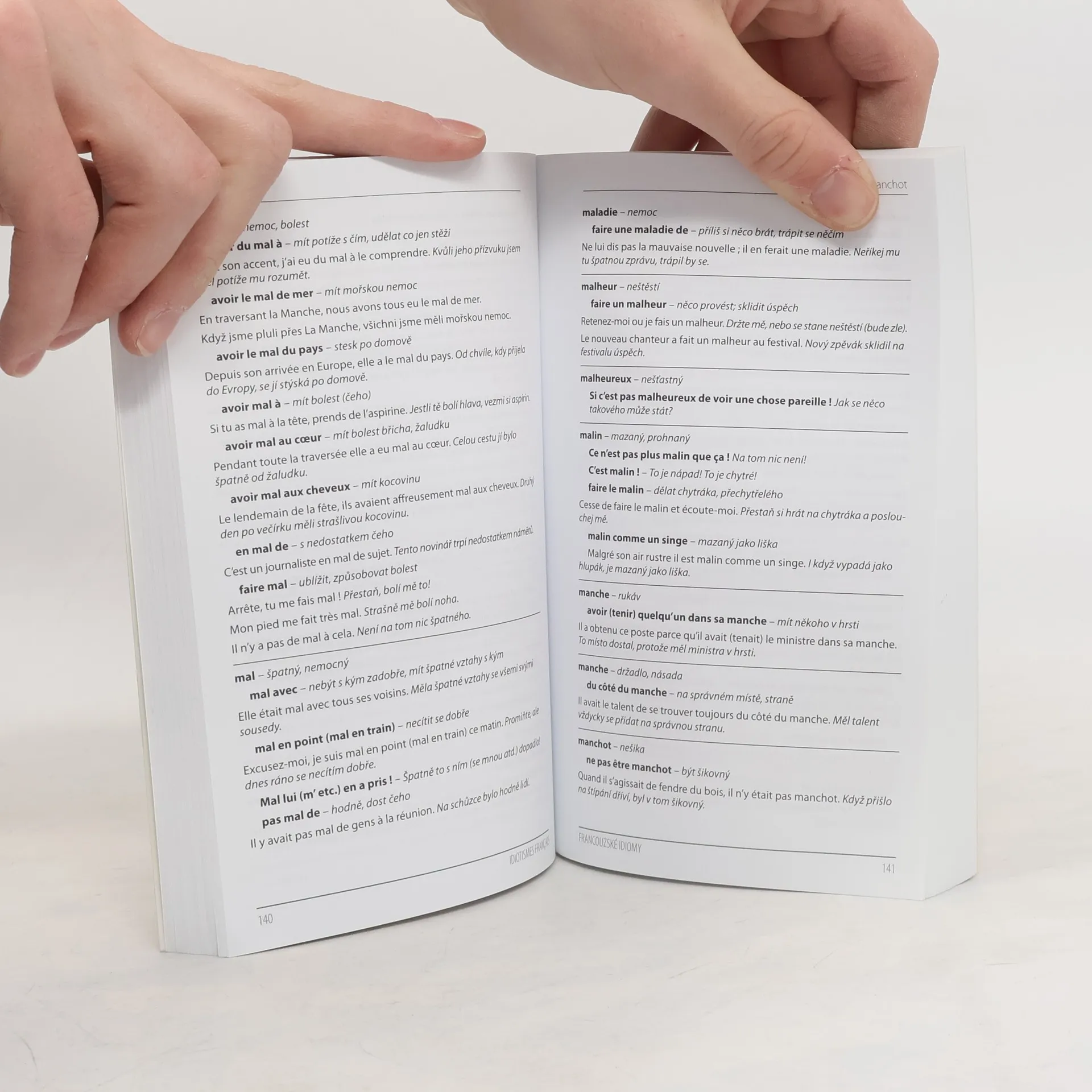 Idiomy, neboli ustálená spojení slov, které se často nedají doslovně přeložit, bez pochyby patří mezi tzv. překladatelské oříšky, s kterými mohou mít problém i pokročilí studenti. Hledání takových výrazů ve velkých slovnících francouzštiny může zabrat hodně času, na druhou stranu kapesní slovníky obvykle nechávají malý prostor pro idiomy. Je tedy mnohem snazší nahlédnout do příručky, která vám nabízí více než 2000 idiomatických obratů ze současného francouzského jazyka. Výrazy jsou seřazeny abecedně dle klíčového slova, od kterého se fráze odvíjí. Každý idiomatický výraz je opatřen vzorovou větou s českým překladem. V závěru publikace se nachází praktický rejstřík, díky kterému rychle najdete potřebný výraz, a také seznam běžných francouzských zkratek s významem a českými ekvivalenty. Publikace je vhodnou pomůckou pro všechny zájemce o francouzský jazyk. Najdete v ní odpovědi a vysvětlení i těch nejzáludnějších idiomatických vazeb.