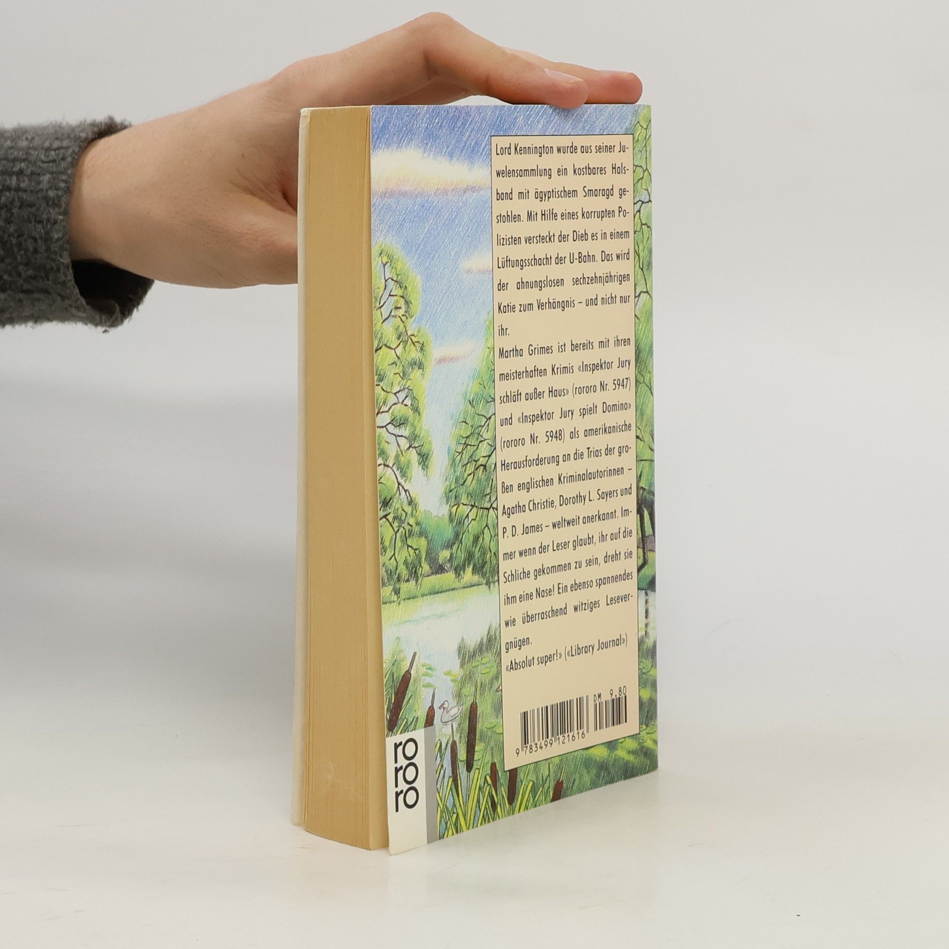 Lord Kennington wurde aus seiner Juwelensammlung ein kostbares Halsband mit ägyptischem Smaragd gestohlen. Das wird der ahnungslosen sechzehnjährigen Katie zum Verhängnis – und nicht nur ihr.Martha Grimes ist bereits mit ihren meisterhaften Krimis «Inspektor schläft außer Haus» und «Inspektor Jury spielt Domino» als amerikanische Herausforderung an die Trias der großen englischen Krimiautorinnen – Agatha Christie, Dorothy L. Sayers und P. D. James – weltweit anerkannt. Immer wenn der Leser glaubt, ihr auf die Schliche gekommen zu sein, dreht sie ihm eine Nase! Ein ebenso spannendes, wie überraschen witziges Lesevergnügen. «Absolut super!» («Library Journal»)