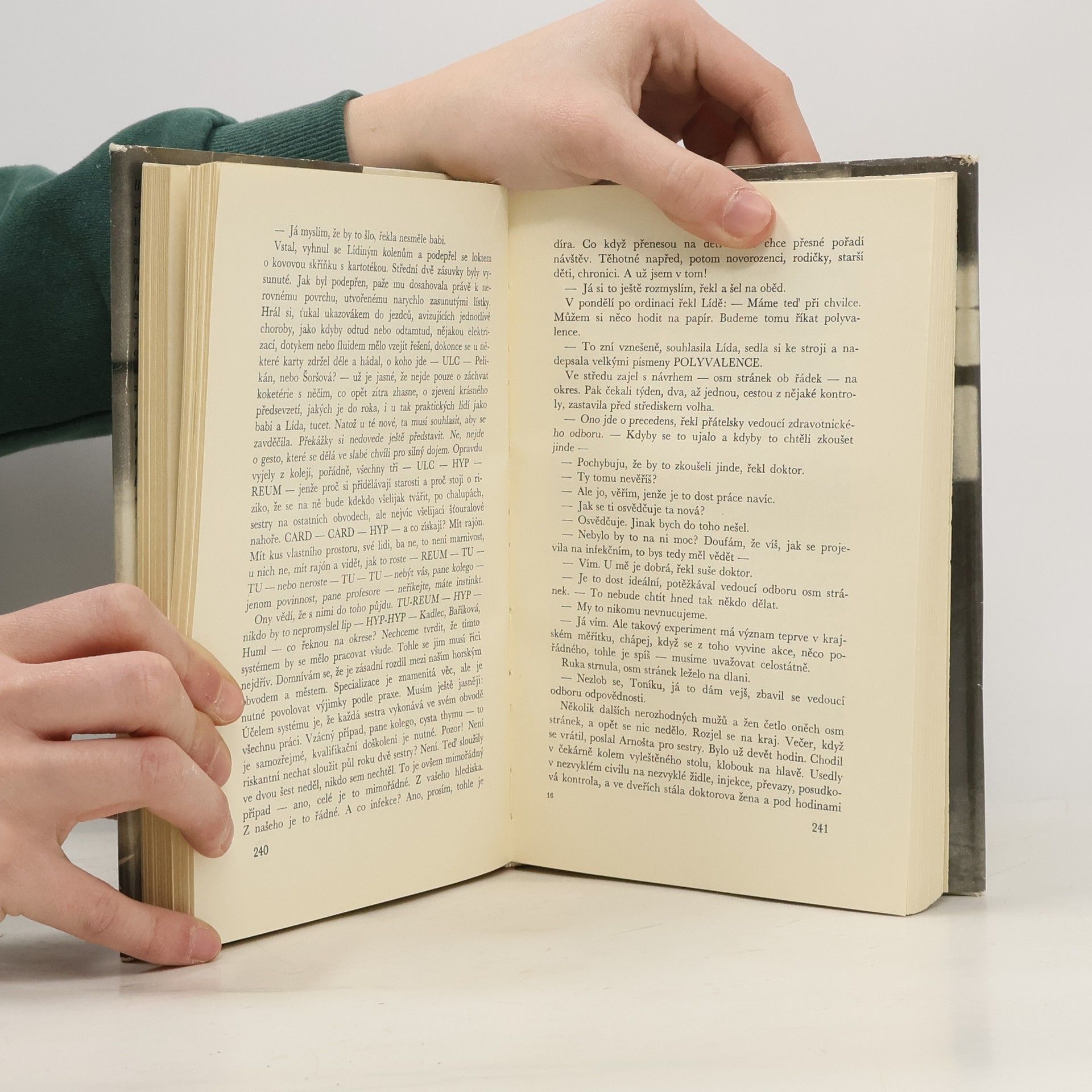 Obsáhlý román z lékařského prostředí zavádí čtenáře do komplexu jedné okresní nemocnice. V řadě událostí všedních dnů se odrážejí celé lidské osudy, radosti i trápení jak pacientů, tak i lékařů, jejich charaktery i problémy. Odborná medicinská terminologie a lékařský sleng,který se zde ve značné míře vyskytuje, zacházejí místy až na samu hranici srozumitelnosti, vytváří však velmi výraznou, autentickou atmosféru. Kniha, stojící na pomezí románu a reportáže, umělecké fikce a literatury faktu, se do podvědomí veřejnosti zapsala i svým filmovým zpracováním.