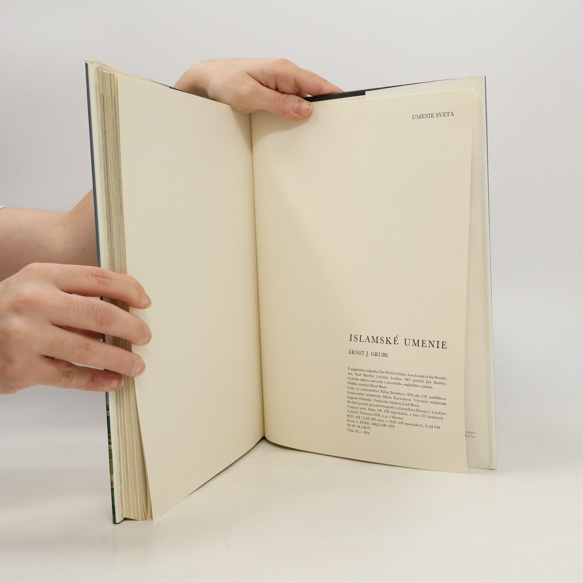 Architektúra, práce z kovu, maľba, koberce, rezby, keramika: V tejto publikácii nás dr. Grube oboznamuje s islamským svetom a jeho umením. Na bohatom ilustračnom materiáli môžeme obdivovať monumentálne mešity a paláce, štíhle minarety, prekrásne miniatúry a fascinujúce orientálne koberce...Vývoj islamského umenia začína dynastiou Umajovcov v 7. storočí a svoje prvky do neho postupne vniesli aj Peržania, Turci a arabskí obyvatelia, ktorí v Španielsku zanechali slávny palác Alhambra.