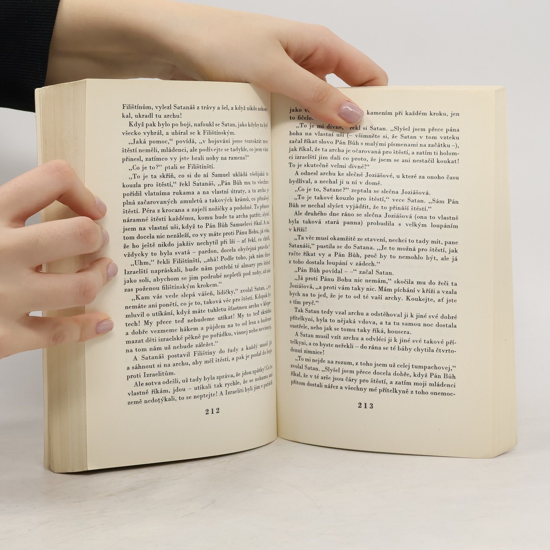 Humorná parafráze Starého zákona vypráví biblické příběhy od stvoření Adama a Evy až po osudy starozákonných proroků. Autor vychází z folkloru amerických černochů a přejímá jejich interpretaci náboženských dějů, která živelně tíhne k pozemské konkrétnosti a odmítá všechnu mystiku. Biblické osoby včetně Pána Boha vystupují jako obyčejní lidé, jejich stylizované projevy a příběhy jsou přetvářeny podle představ utlačovaného černošského lidu. Tím vzniká pásmo bezbožných příběhů, jejichž komika vyplývá z kontrastu mezi náboženskou předlohou a jejím svérázným, mnohdy naturalistickým přepisem.