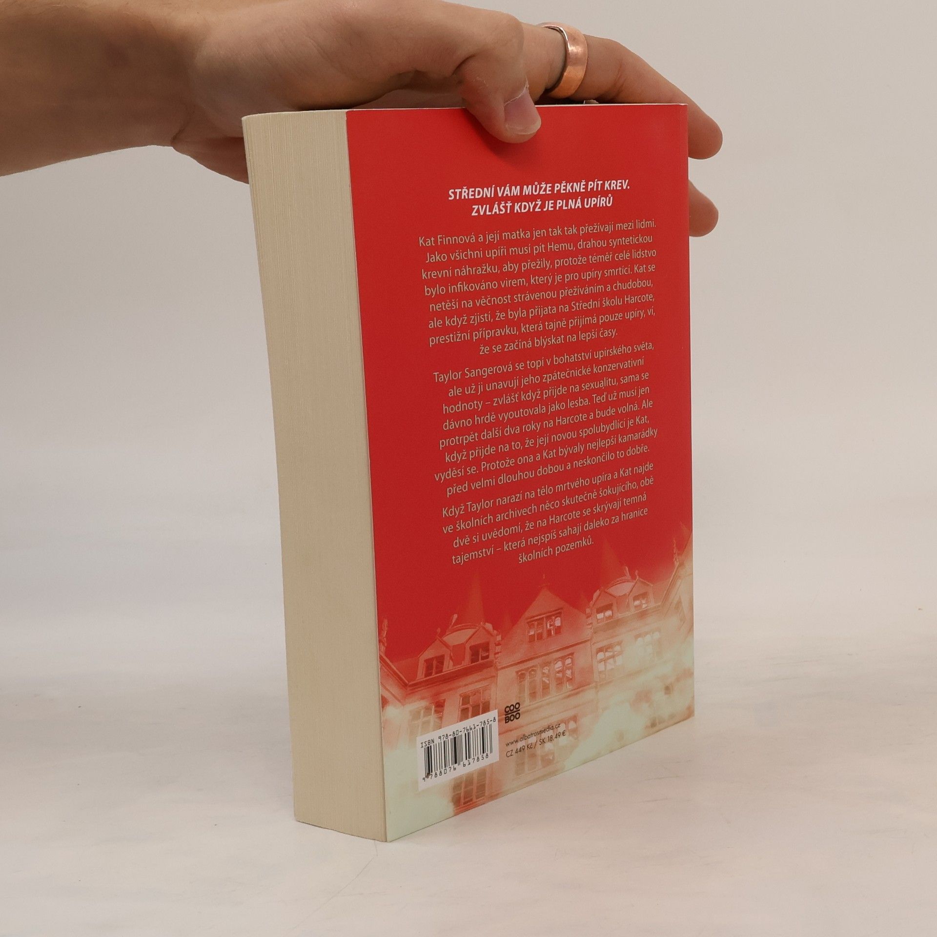 Střední vám může pěkně pít krev. Zvlášť když je plná upírů Kat a Taylor spolu mají sdílet pokoj na koleji a oběma je jasné, že to neskončí dobře. Zatímco pro Kat je prestižní upírská škola vykoupením ze života v chudobě a utajení mezi lidmi, Taylor má plné zuby konzervativních hodnot upírské smetánky. Pak ale Kat začne odhalovat tajemství krevní náhražky, kterou kvůli nebezpečnému viru všichni pijí místo lidské krve. Ačkoli jejich přátelství minule neskončilo dobře, Kat a Taylor musí spojit síly, aby rozkryly záhadu, která možná sahá daleko za hranice školy.