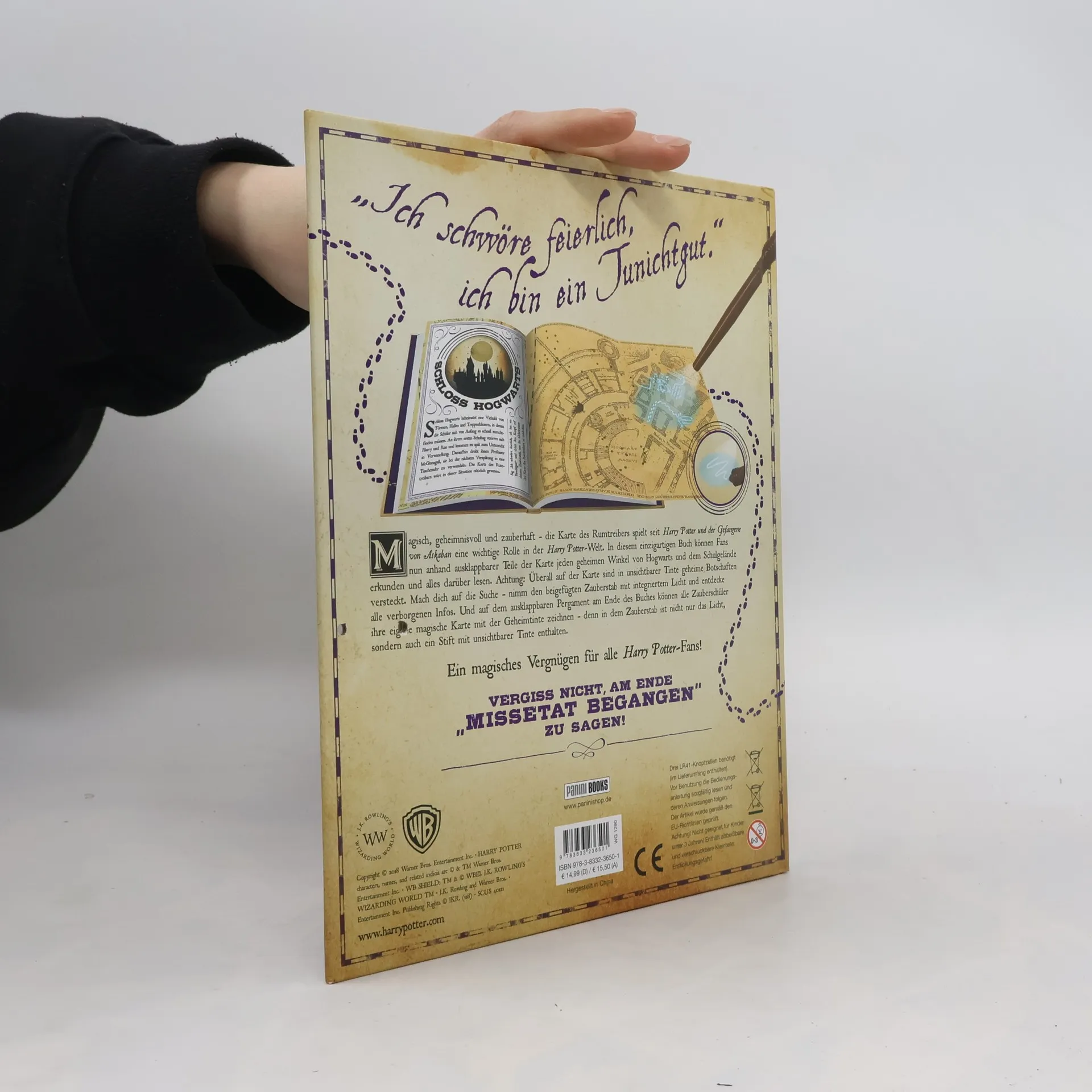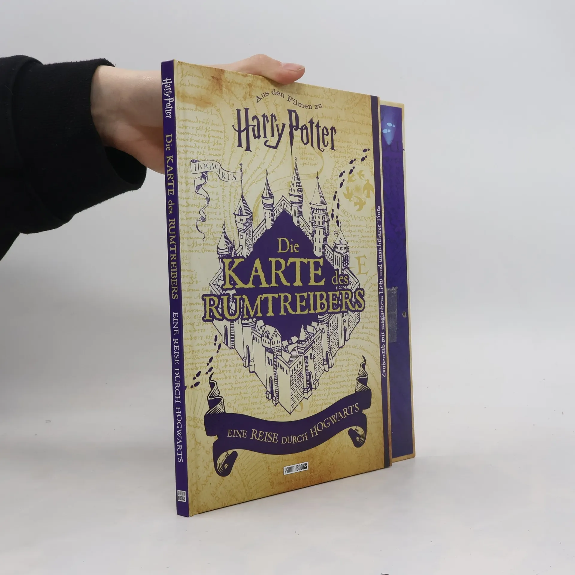 Magisch, geheimnisvoll und zauberhaft – die Karte des Rumtreibers spielt seit Harry Potter und der Gefangene von Askaban eine wichtige Rolle in der Harry Potter-Welt. In diesem einzigartigen Buch können Fans nun anhand ausklappbarer Teile der Karte jeden geheimen Winkel von Hogwarts und dem Schulgelände erkunden und alles darüber lesen. Achtung: Überall auf der Karte sind in unsichtbarer Tinte geheime Botschaften versteckt. Mach dich auf die Suche – nimm den beigefügten Zauberstab mit integriertem Licht und entdecke alle verborgenen Infos. Und auf dem ausklappbaren Pergament am Ende des Buches können alle Zauberschüler ihre eigene magische Karte mit der Geheimtinte zeichnen – denn in dem Zauberstab ist nicht nur das Licht, sondern auch ein Stift mit unsichtbarer Tinte enthalten. Ein magisches Vergnügen für alle Harry Potter-Fans