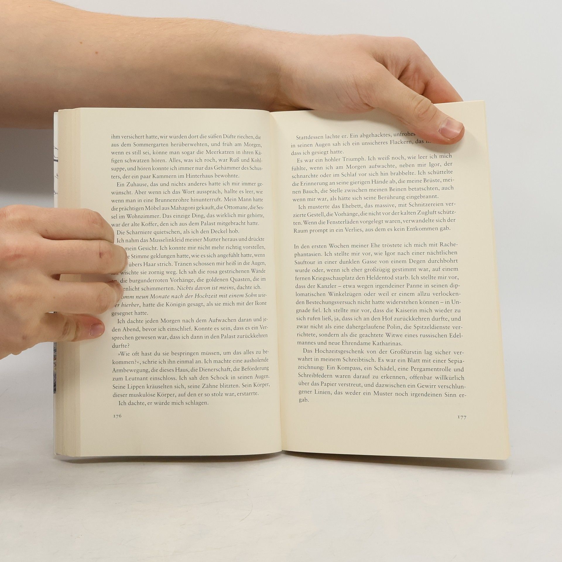 Geheime Gänge, verdeckte Türen, dunkle Nischen: Als die Waise Varvara als Dienstmädchen in den Winterpalast kommt, lernt sie schnell, sich ihre Verschwiegenheit und ihren aufmerksamen Blick zunutze zu machen. Keine Intrige, die ihr entginge, kein Getuschel, das ihren Ohren verborgen bliebe. Schnell wird sie zu einer der wichtigsten „Spioninnen“ im Palast. Als die junge Sophie von Anhalt-Zerbst – die spätere Katharina die Große – an den Hof kommt und auf dem Weg zur Macht eine Verbündete braucht, wird Varvara ihre engste Vertraute. Schließlich erklimmt Katharina den Zarenthron – aus der unerfahrenen Fremden wird eine der mächtigsten Frauen ihrer Zeit. Eva Stachniaks opulenter Roman über die ungewöhnliche Freundschaft zweier Frauen führt den Leser in eine Welt, in der Leidenschaft und Vertraulichkeit auf Heimtücke und Verrat treffen – in die abgründig-geheimnisvolle Welt des russischen Zarenhofs, gehüllt in schweren Brokat und knisternde Seide.