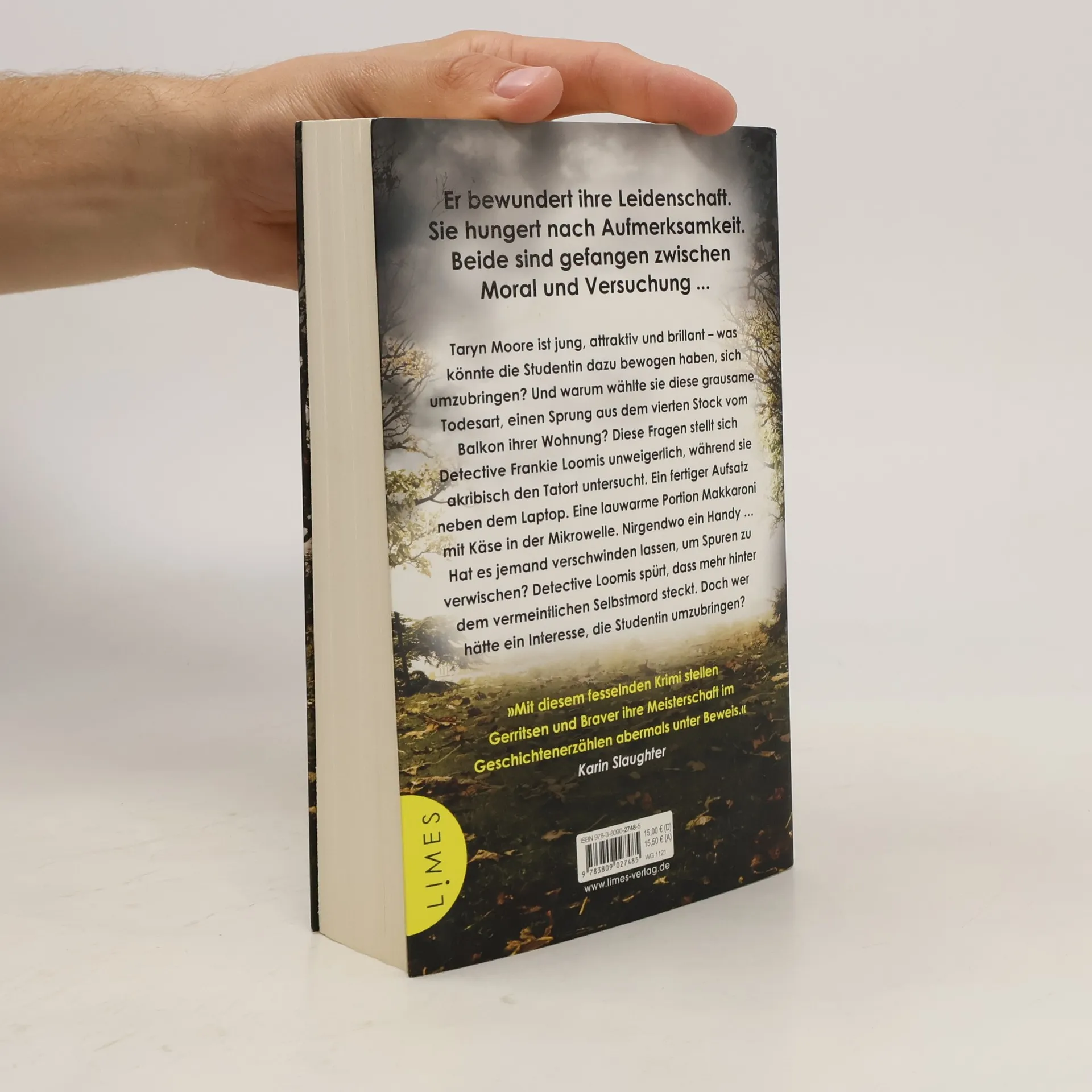 Der brandneue Pageturner aus der Feder der Bestsellerautoren Tess Gerritsen und Gary Braver – ein Spannungshochkaräter über Obsession, Versuchung und menschliche Schwächen. Taryn Moore ist jung, attraktiv und brillant – warum sollte sie sich umbringen? Detective Frankie Loomis spürt sofort, dass mehr hinter der Geschichte steckt, als sie den Tatort des vermeintlichen Selbstmords untersucht. Die Studentin hat sich aus dem Fenster ihres Apartments gestürzt. Doch ihr Handy ist spurlos verschwunden. Hat es jemand verschwinden lassen, um Spuren zu vertuschen?Für den Englischprofessor Jack Dorian war Taryn die vollendete Versuchung: intelligent, aufmerksam und zu hundert Prozent tabu. Doch Taryn hatte auch eine dunkle Seite, eine Neigung zu obsessiver Liebe – auch für Jack. Und mit ihrem Tod haben seine Probleme erst richtig begonnen.Loomis‘ Ermittlungen enthüllen pikante Geheimnisse. Schnell wird klar, dass Jack Dorian mehr weiß, als er offenbart. Doch hat er auch einen kaltblütigen Mord auf dem Gewissen? Weitere Stand-alone-Krimis von Tess Gerritsen: »Gute Nacht, Peggy Sue«»Kalte Herzen«»Roter Engel«»Trügerische Ruhe«»In der Schwebe«»Leichenraub«»Totenlied«»Das Schattenhaus«