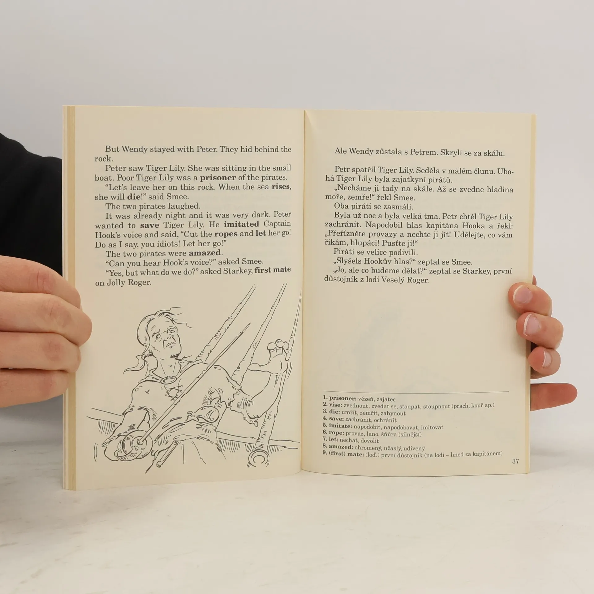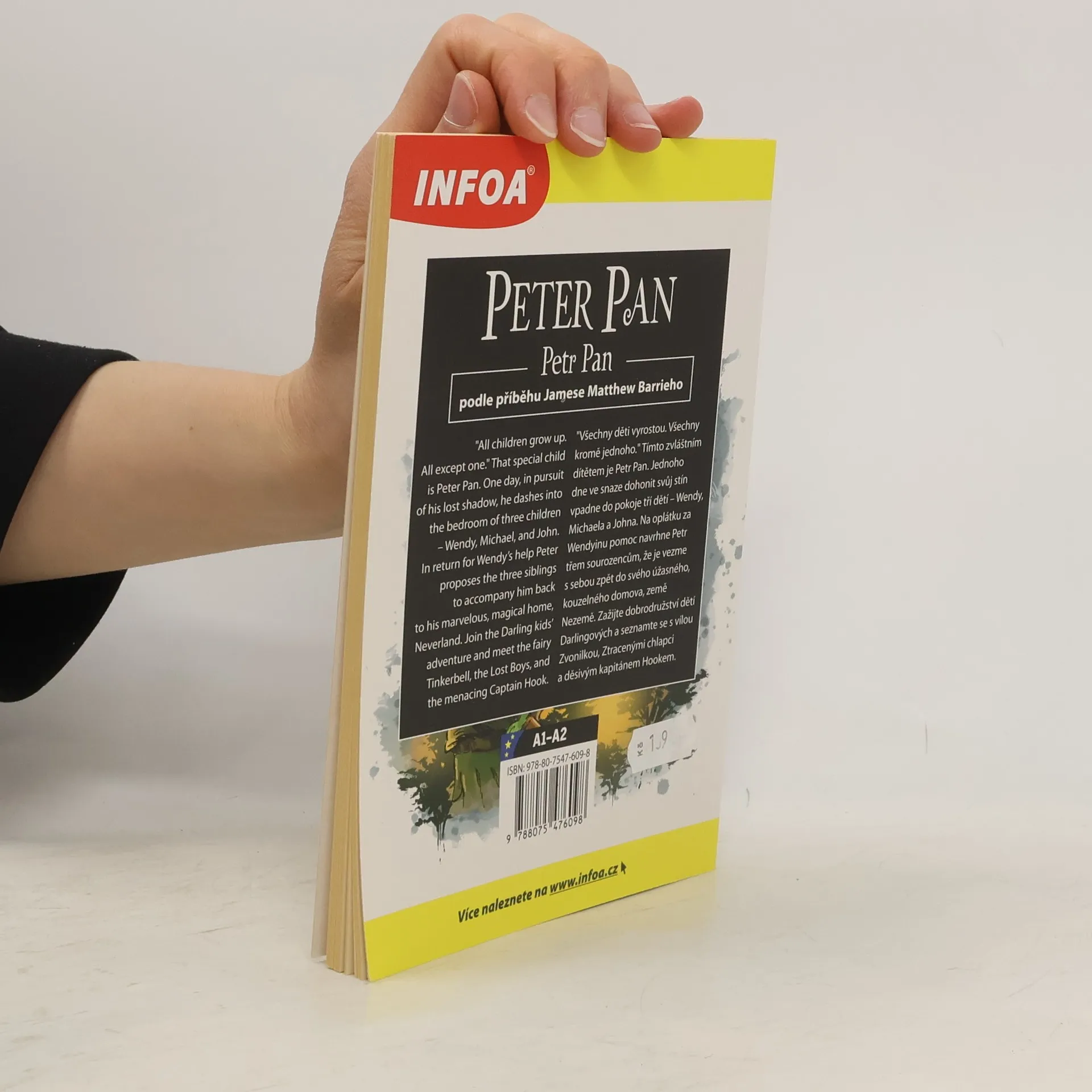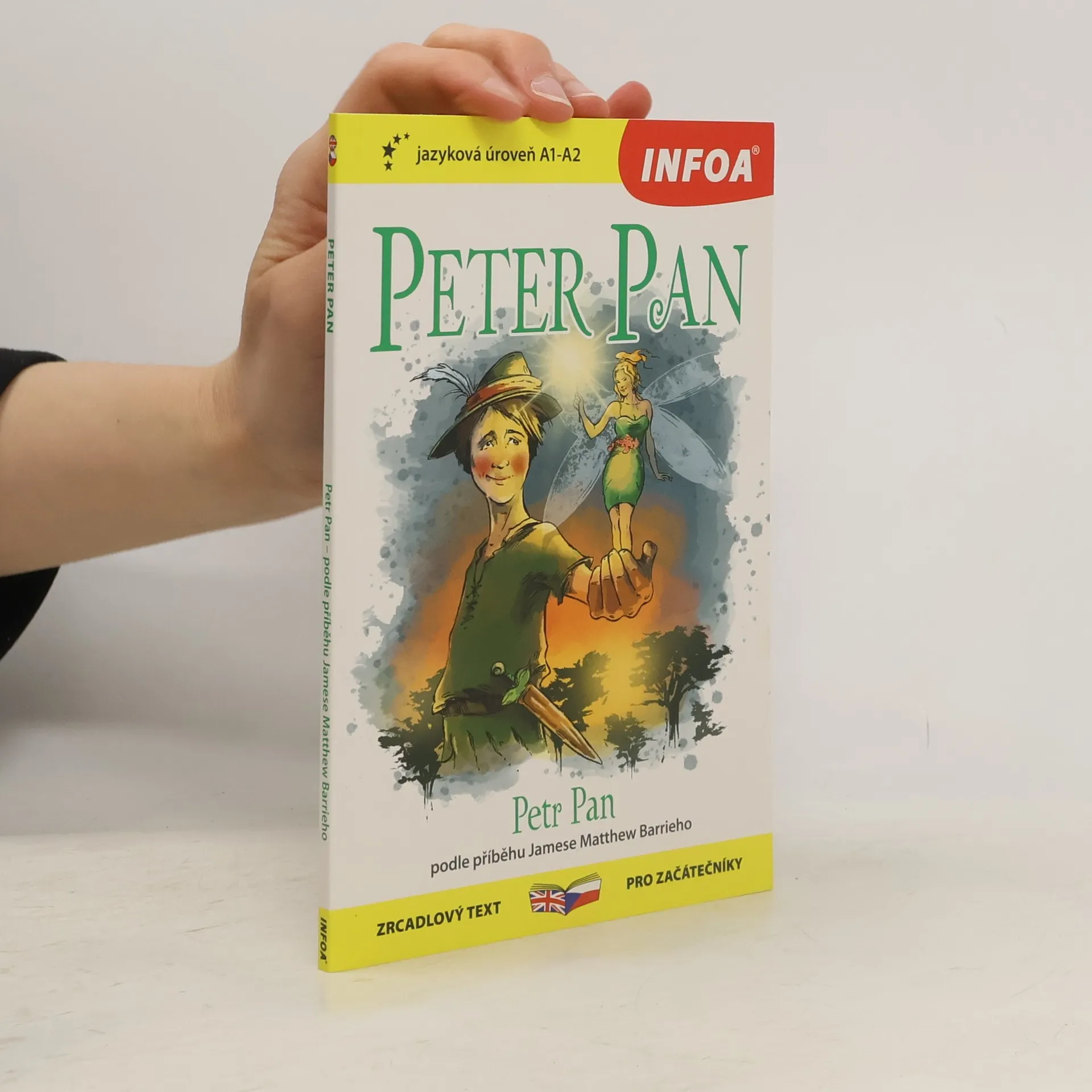 "Všechny děti vyrostou. Všechny kromě jednoho." Tímto zvláštním dítětem je Petr Pan. Jednoho dne ve snaze dohonit svůj stín vpadne do pokoje tří dětí – Wendy, Michaela a Johna. Na oplátku za Wendyinu pomoc navrhne Petr třem sourozencům, že je vezme s sebou zpět do svého úžasného, kouzelného domova, země Nezemě. Zažijte dobrodružství dětí Darlingových a seznamte se s vílou Zvonilkou, Ztracenými chlapci a děsivým kapitánem Hookem. Anglicko-český zrcadlový text pro začátečníky. "All the children will grow up. All but one." This special child is Petr Pan. One day, trying to catch up with his shadow, he bursts into the room of three children - Wendy, Michael and John. In return for Wendy's help, Peter suggests to the three siblings that he take them back to his wonderful, magical home, the land of the Land. Experience the adventures of the Darling children and meet the fairy Tinkerbell, the Lost Boys and the terrifying Captain Hook. English-Czech mirror text for beginners.