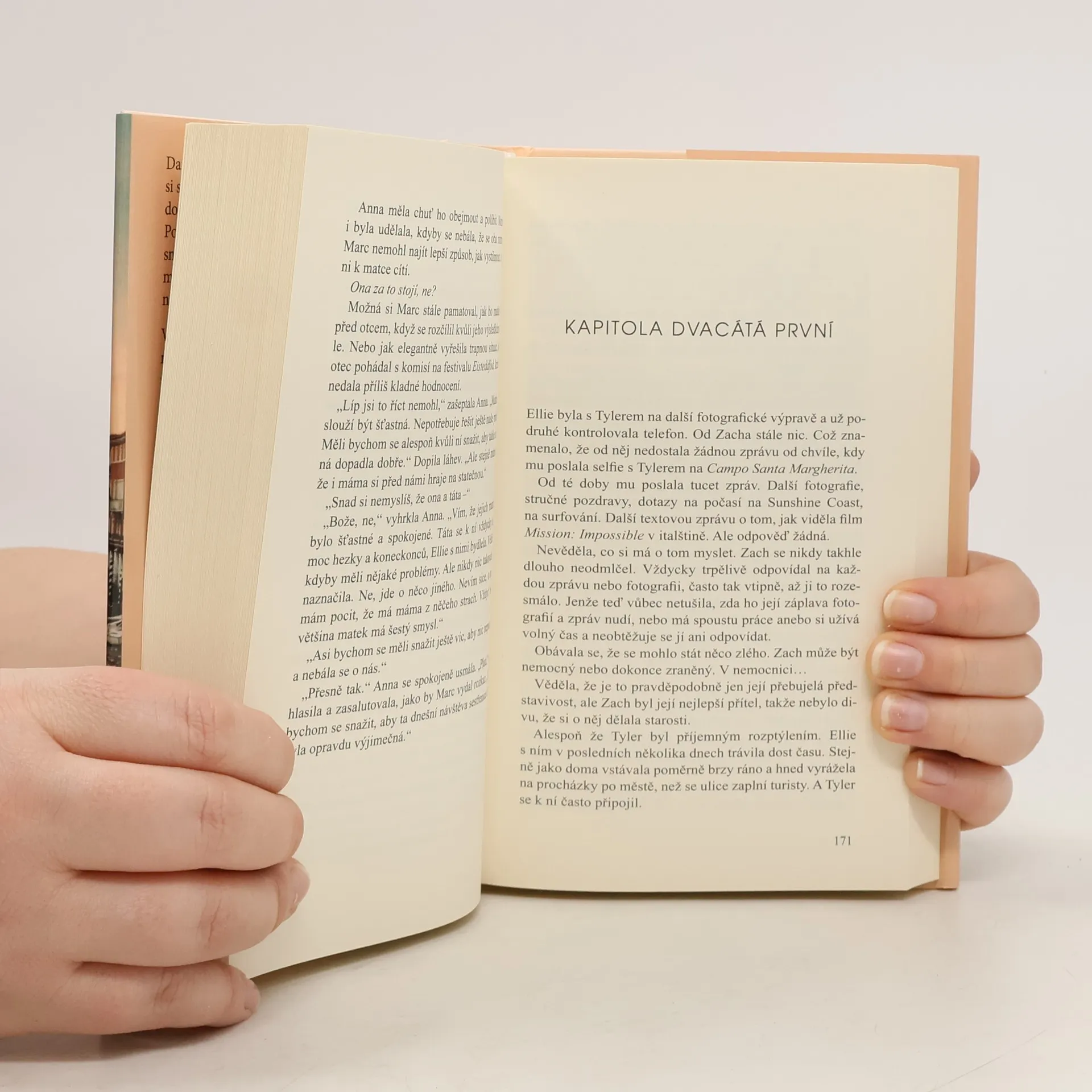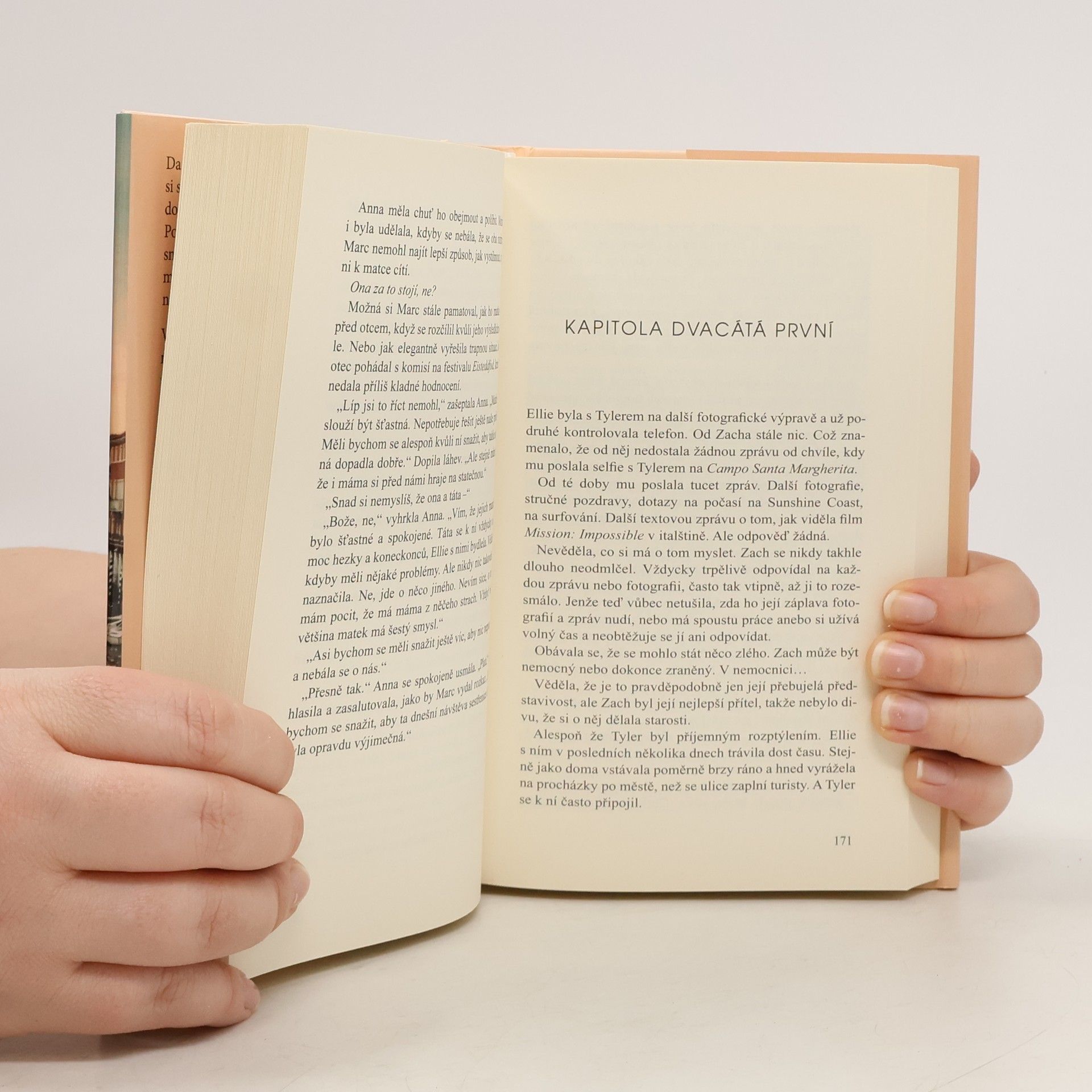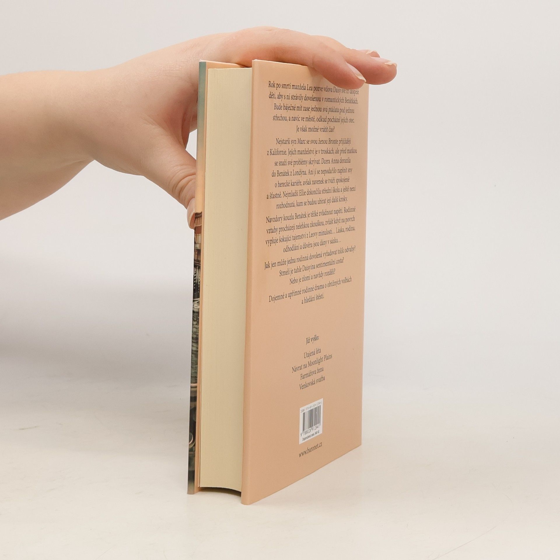 Rok po smrti manžela Lea pozve vdova Daisy své tři dospělé děti, aby s ní strávily dovolenou v romantických Benátkách. Bude báječné mít zase svá ptáčata pod jednou střechou, a navíc ve městě, odkud pocházel jejich otec. Je však možné vrátit čas? Nejstarší syn Marc se svou ženou Bronte přijíždějí z Kalifornie. Jejich manželství je v troskách, ale před matkou se snaží své problémy skrývat. Dcera Anna dorazila do Benátek z Londýna. Ani jí se nepodařilo naplnit sny o herecké kariéře, avšak navenek se tváří spokojeně a šťastně. Nejmladší Ellie dokončila střední školu a ještě není rozhodnutá, kam se budou ubírat její další kroky. Navzdory kouzlu Benátek je těžké zadržet napětí, které bublá pod povrchem. Rodinné vztahy procházejí nelehkou zkouškou, zvlášť, když na povrch vypluje šokující tajemství z Leovy minulosti… Láska, rodina, odhodlání a důvěra jsou dány v sázku… Jak jen může jedna rodinná dovolená vyžadovat tolik odvahy? Stmelí je tahle Daisyina sentimentální cesta? Nebo je zlomí a navždy rozdělí? Dojemné a upřímné rodinné drama o obtížných volbách a hledání štěstí.