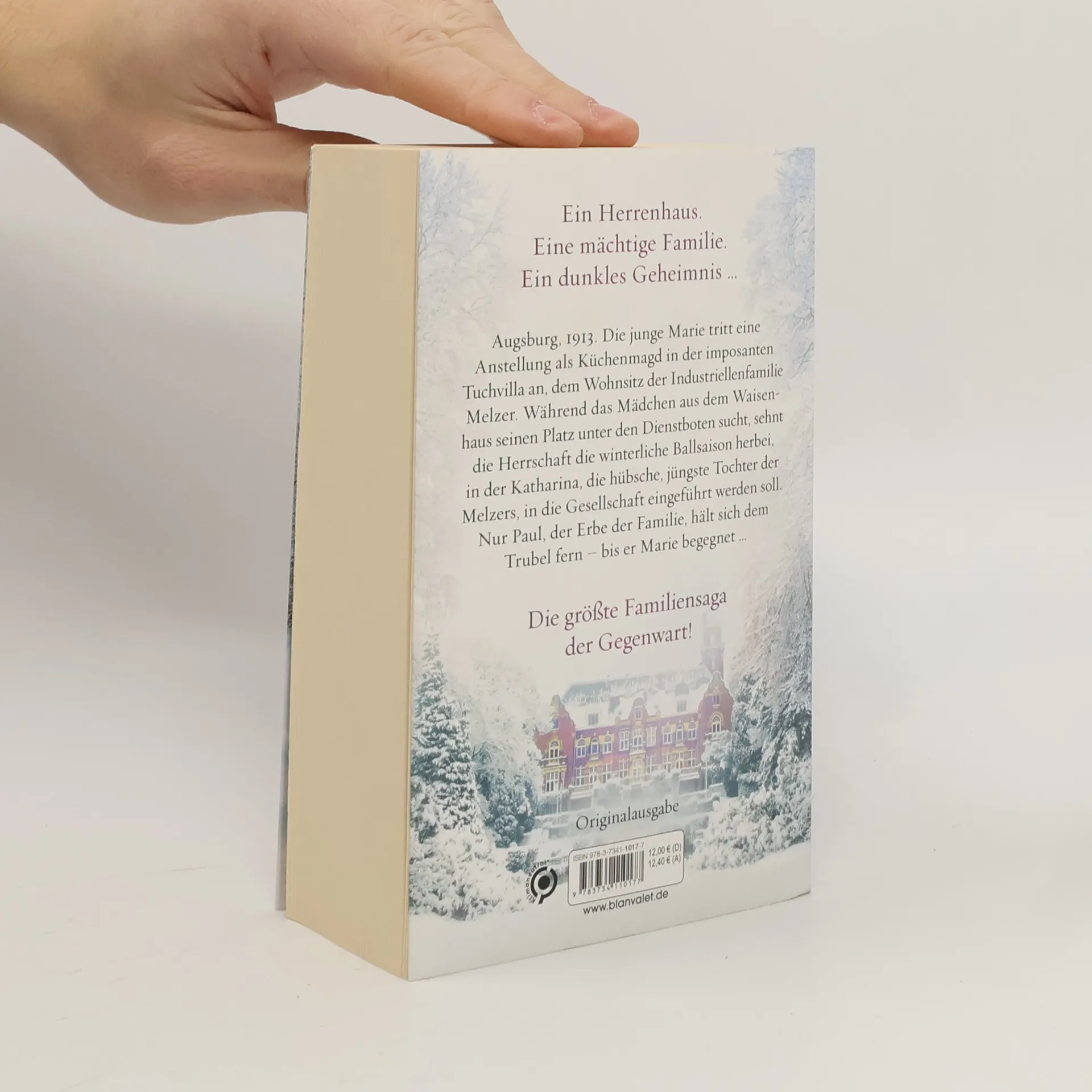 Ein Herrenhaus. Eine mächtige Familie. Ein dunkles Geheimnis … Augsburg, 1913. Die junge Marie tritt eine Anstellung als Küchenmagd in der imposanten Tuchvilla an, dem Wohnsitz der Industriellenfamilie Melzer. Während das Mädchen aus dem Waisenhaus seinen Platz unter den Dienstboten sucht, sehnt die Herrschaft die winterliche Ballsaison herbei, in der Katharina, die hübsche, jüngste Tochter der Melzers, in die Gesellschaft eingeführt wird. Nur Paul, der Erbe der Familie, hält sich dem Trubel fern und zieht sein Münchner Studentenleben vor – bis er Marie begegnet … SPIEGEL-Bestsellerautorin Anne Jacobs bei Blanvalet: Die Tuchvilla-Saga: 1. Die Tuchvilla 2. Die Töchter der Tuchvilla 3. Das Erbe der Tuchvilla 4. Rückkehr in die Tuchvilla Die Gutshaus-Saga: 1. Das Gutshaus. Glanzvolle Zeiten 2. Das Gutshaus. Stürmische Zeiten 3. Das Gutshaus. Zeit des Aufbruchs