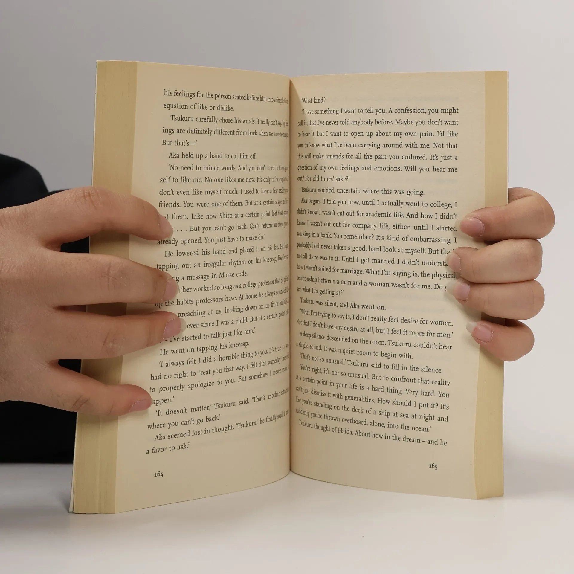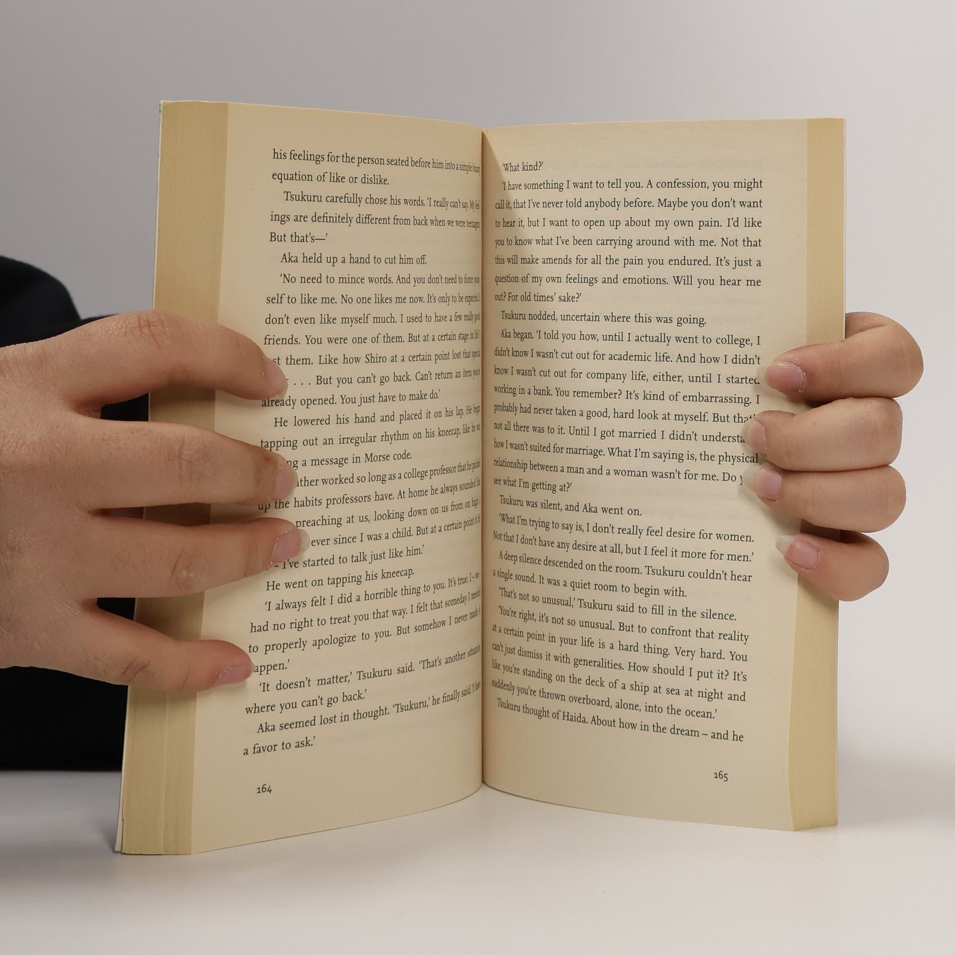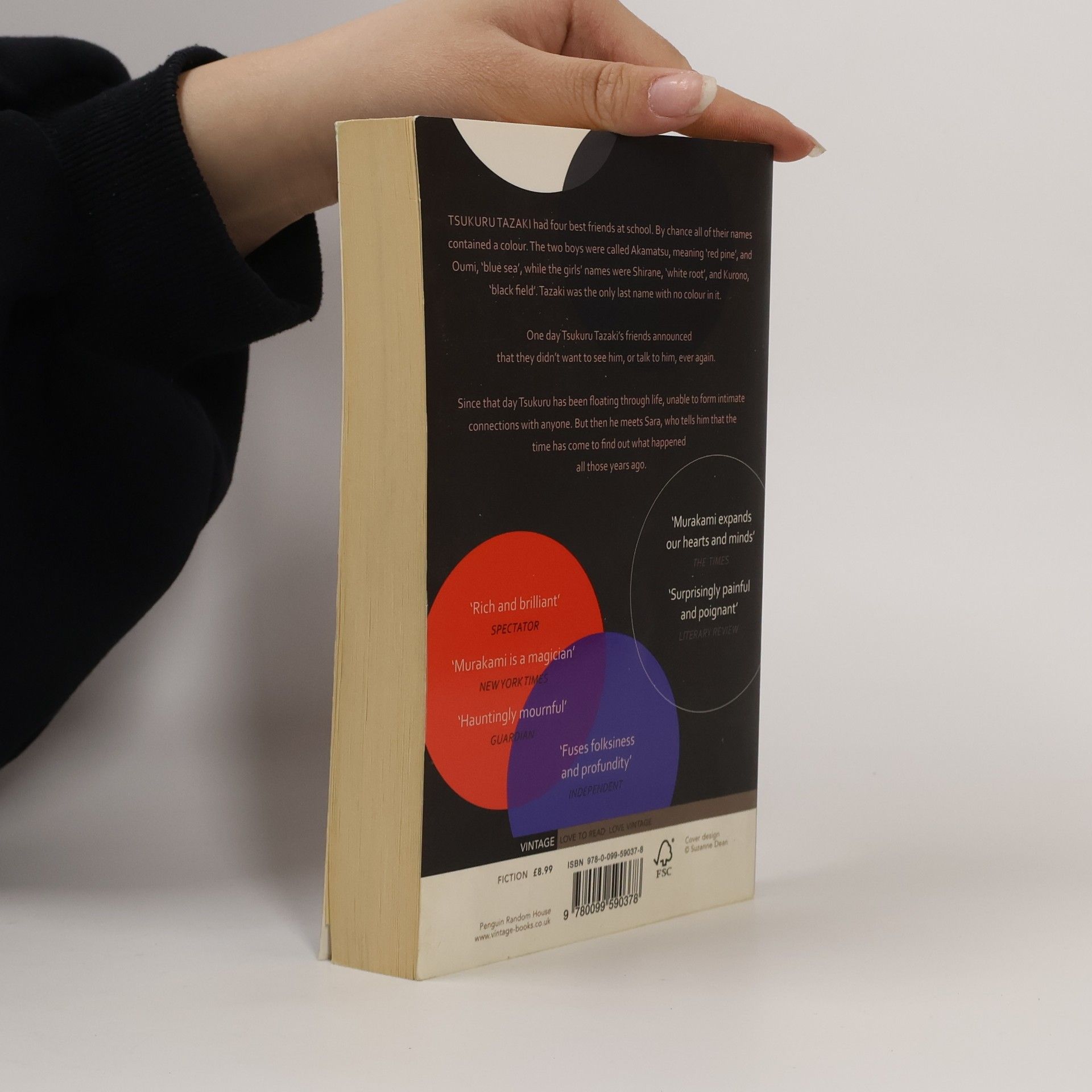 Tsukuru Tazaki had four best friends at school. By chance all of their names contained a colour. The two boys were called Akamatsu, meaning 'red pine', and Oumi, 'blue sea', while the girls' names were Shirane, 'white root', and Kurono, 'black field'. Tazaki was the only last name with no colour in it.