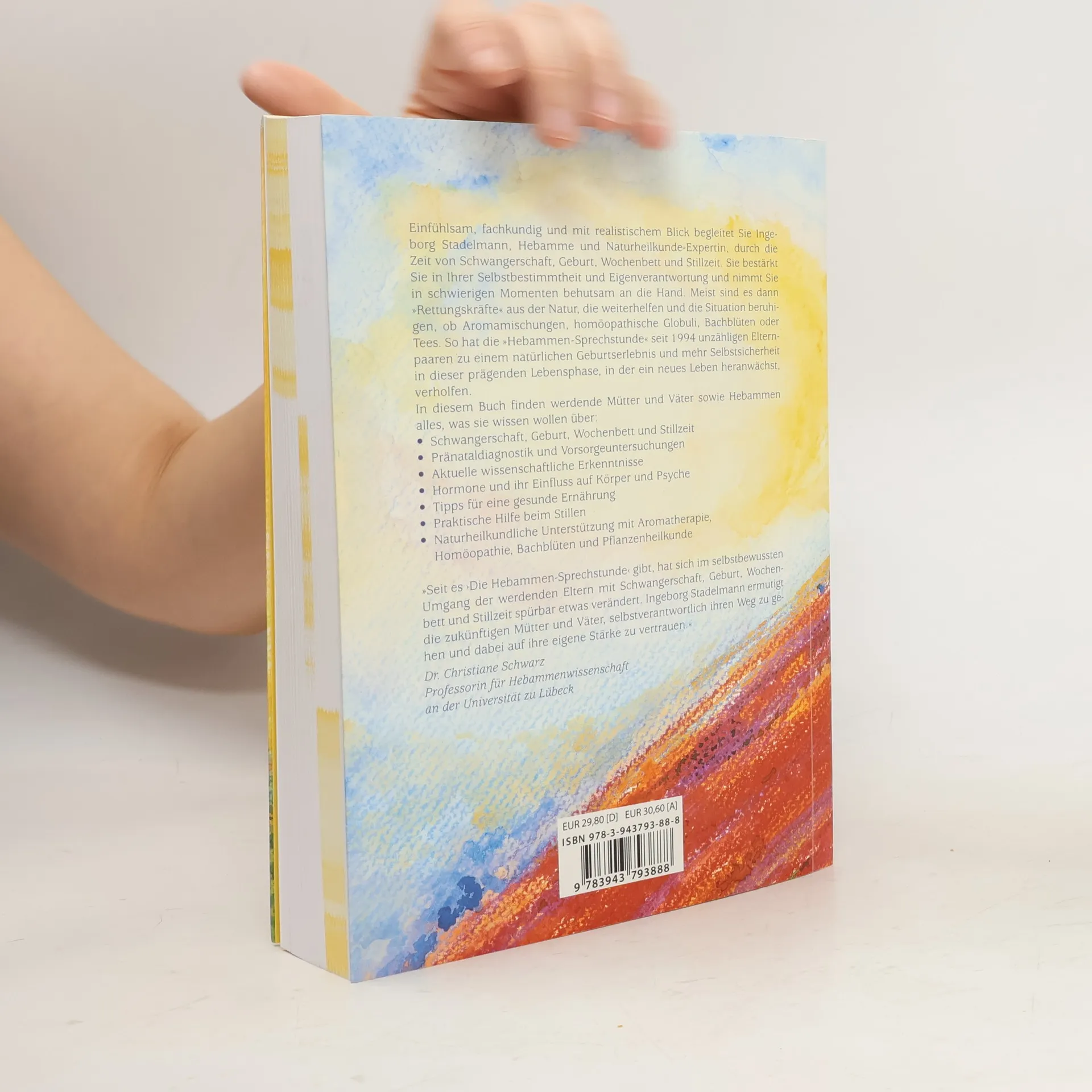 Der Bestseller 2018 erweitert und seitdem laufend aktualisiert! Alles, was sie wissen wollen über: Schwangerschaft, Geburt, Wochenbett und Stillzeit Pränataldiagnostik und Vorsorgeuntersuchungen Aktuelle wissenschaftliche Erkenntnisse Hormone und ihr Einfluss auf Körper und Psyche Tipps für eine gesunde Ernährung Praktische Hilfe beim Stillen Naturheilkundliche Unterstützung mit Aromatherapie, Homöopathie, Bachblüten und Pflanzenheilkunde Einfühlsam, fachkundig und mit realistischem Blick begleitet Sie Ingeborg Stadelmann, Hebamme und Naturheilkunde-Expertin, durch die Zeit von Schwangerschaft, Geburt, Wochenbett und Stillzeit. Sie bestärkt Sie in Ihrer Selbstbestimmtheit und Eigenverantwortung und nimmt Sie in schwierigen Momenten behutsam an die Hand. Meist sind es dann 'Rettungskräfte' aus der Natur, die weiterhelfen und die Situation beruhigen, ob Aromamischungen, homöopathische Globuli, Bachblüten oder Tees. So hat die 'Hebammen-Sprechstunde' seit 1994 unzähligen Elternpaaren zu einem natürlichen Geburtserlebnis und mehr Selbstsicherheit in dieser prägenden Lebensphase, in der ein neues Leben heranwächst, verholfen.