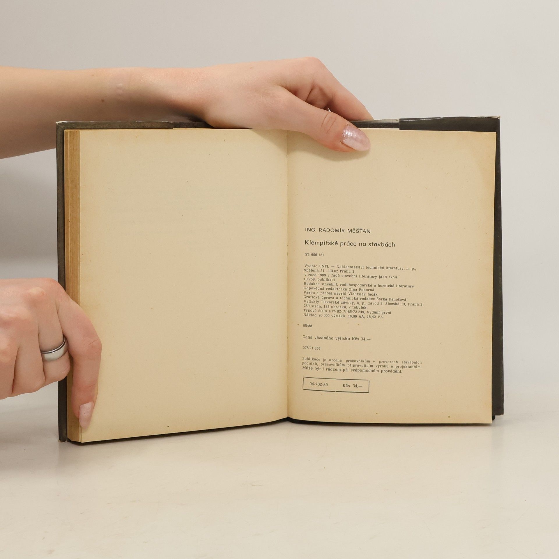 Kapitoly: Materiály, nářadí, nástoje a stroje, Výpočty, vyměřování a nástřih plechů, Vyztužování, spojování a připevňování klempířských prvků, Výroba a osazování klempířských prvků na střechách, Výroba a osazování klempířských prvků na průčelí, Speciální klempířské práce, Uměleckořemeslné klempířské práce, Údržby a opravy klempířských prvků, Povrchové úpravy klempířských prvků nátěrovými hmotami, Bezpečnost při práci ve výškách. První vydání. Cena knihy v čase vydání: 34.- Kčs.